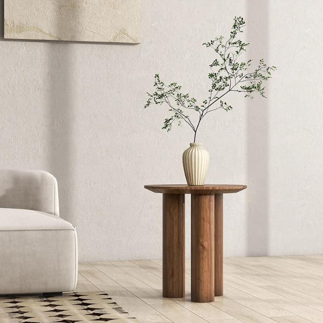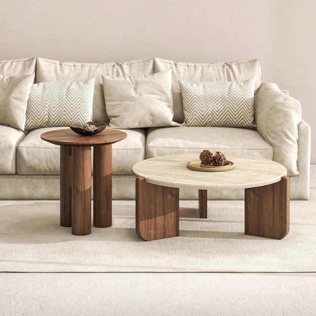 茶几 邊幾 邊桌 侘寂風復古原木客廳沙發邊幾小戶型實木洞石茶几小圓桌床頭小桌子