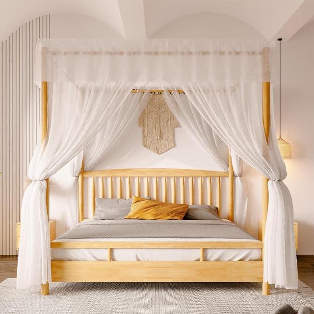 🎉全實木四柱架子床 蚊帳傢用1米5單人床主臥雙人罩子床1.8米民宿床