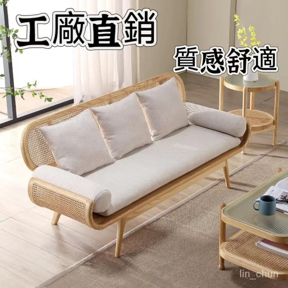 懶人沙發 日式實木藤編沙髮客廳小戶型民宿三人設計師休閒創意傢具雙人籐椅 沙發椅🎉藤編沙發 躺椅 榻榻米 懶人椅 長椅