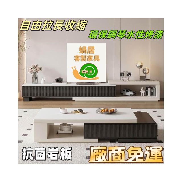 黑白 茶几 客廳家用 現代新款 客廳 岩板 極簡約 電視櫃 茶几 組合 伸縮電視櫃