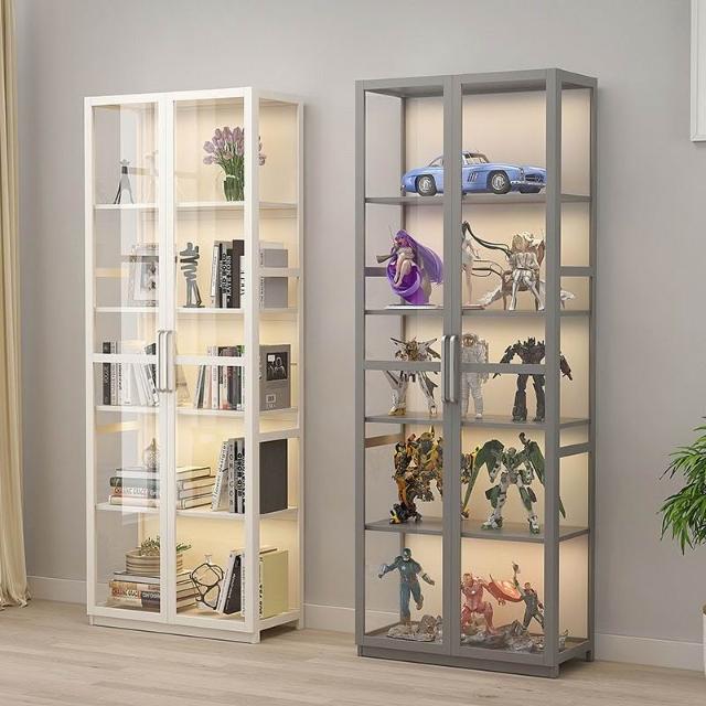 透明展示櫃美式書櫃落地防塵約網紅書架帶玻璃門收納櫃自由組合