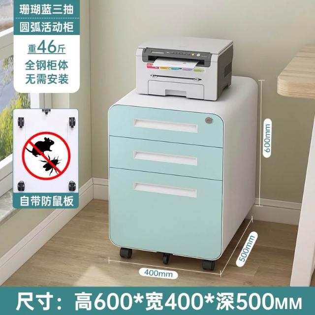 活動櫃 辦公室 桌下 可移動 抽屜櫃 檔案櫃 資料櫃 收納櫃 鋼制 帶鎖 三抽 小櫃子