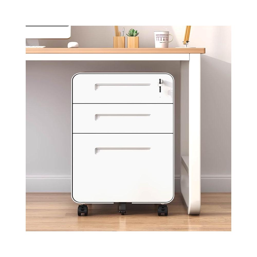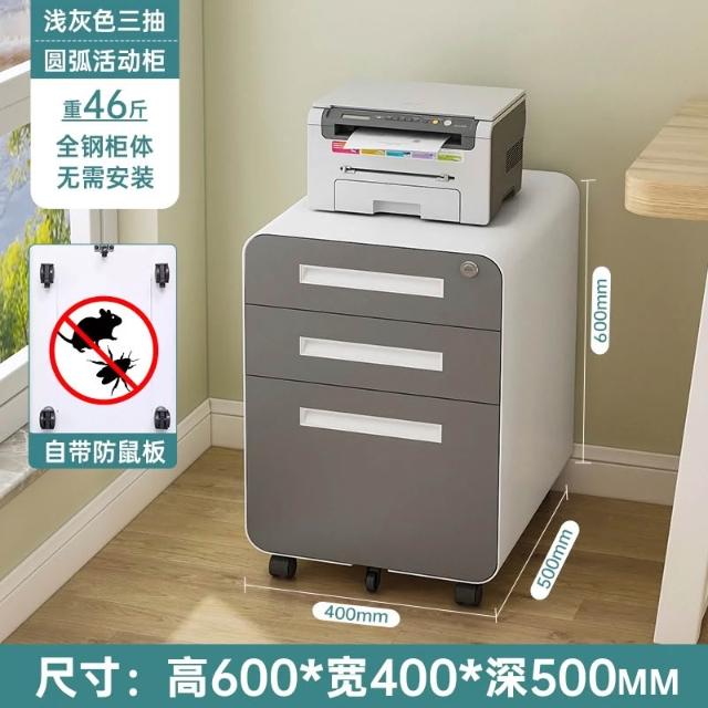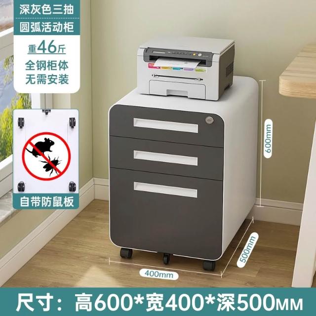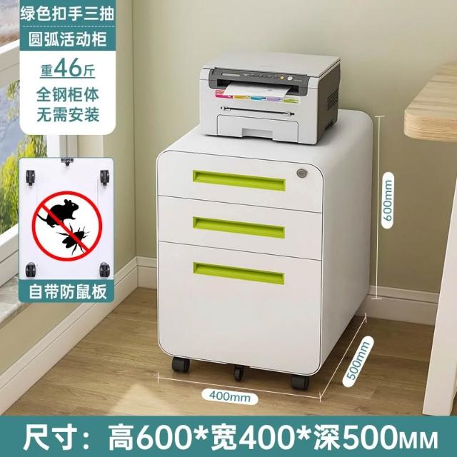 活動櫃 辦公室 桌下 可移動 抽屜櫃 檔案櫃 資料櫃 收納櫃 鋼制 帶鎖 三抽 小櫃子