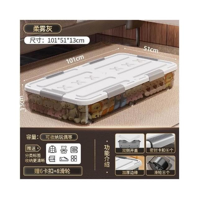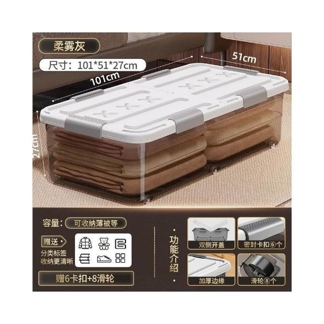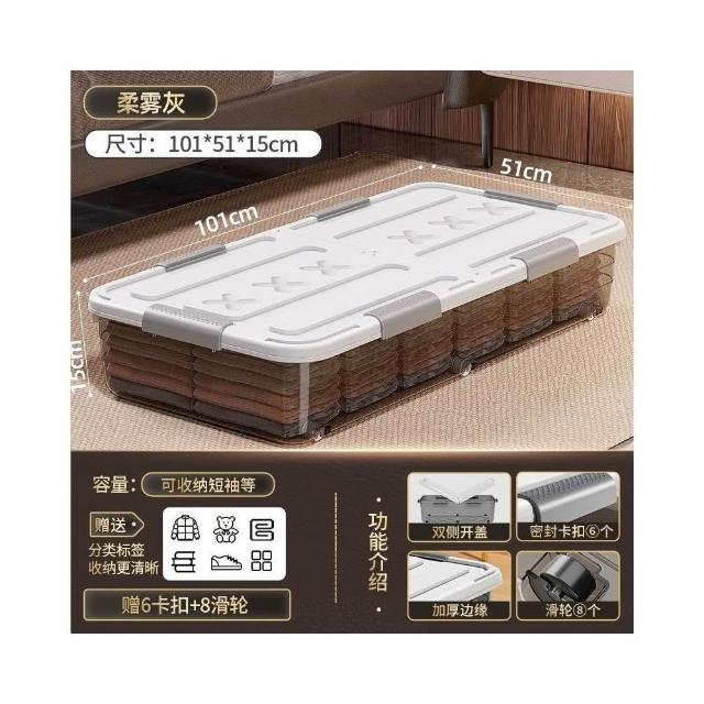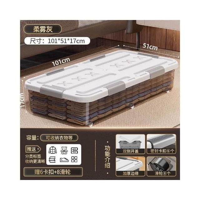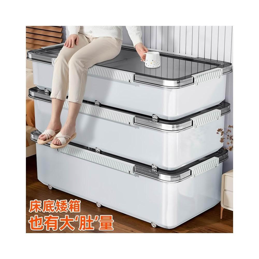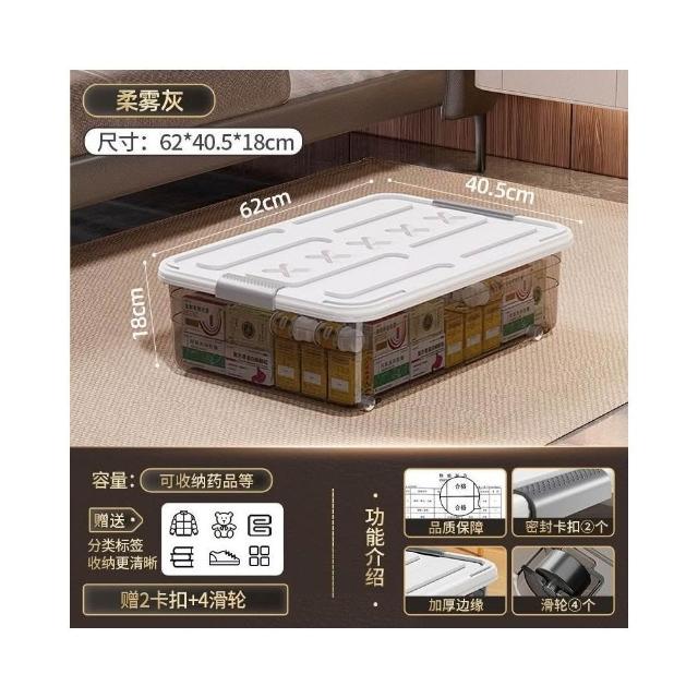 床底收納箱 帶滑輪置物箱 扁平收納盒 抽屜式收納櫃 透明整理箱 床下收納神器