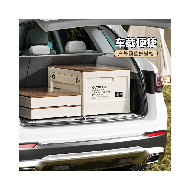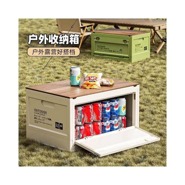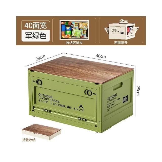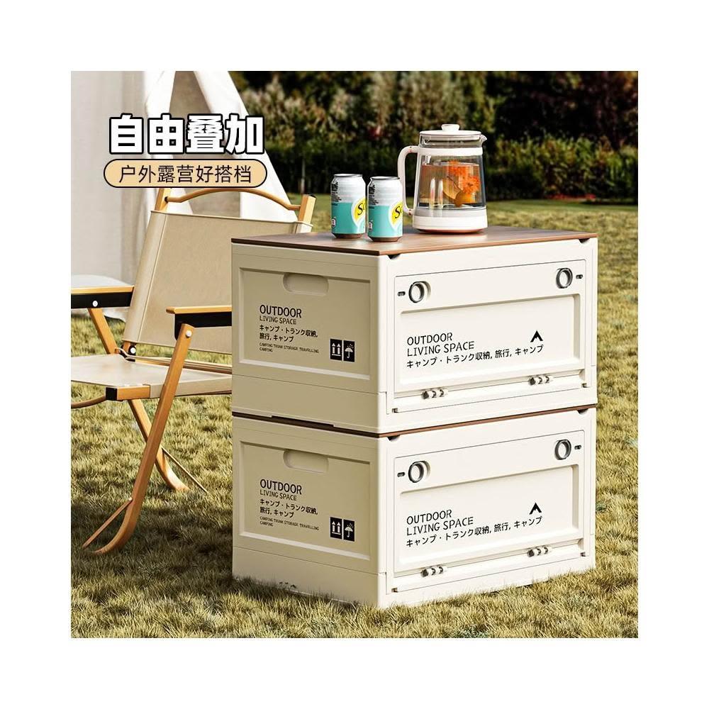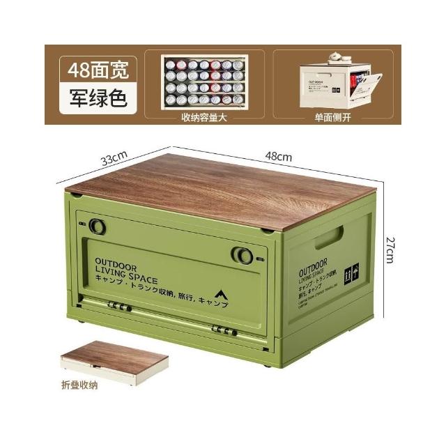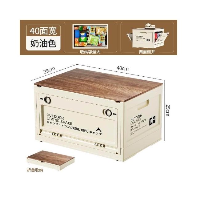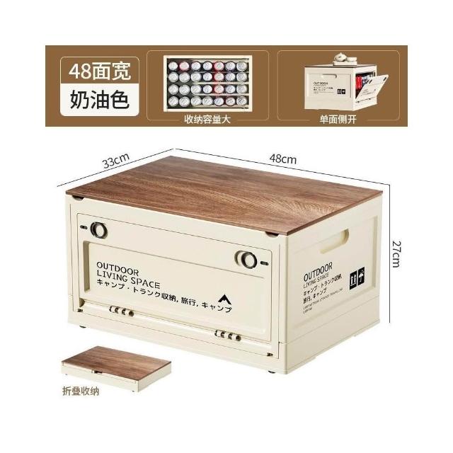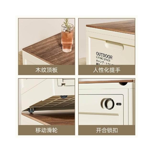日式 大號 戶外 側開 收納箱 滑輪 多功能 露營 整理箱 塑膠 木蓋車載 折疊箱