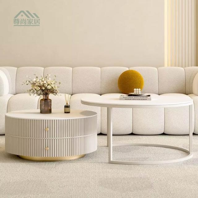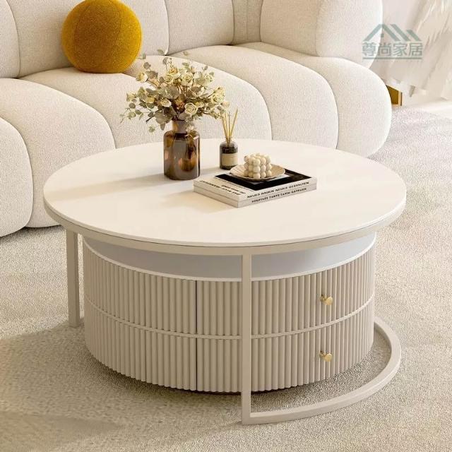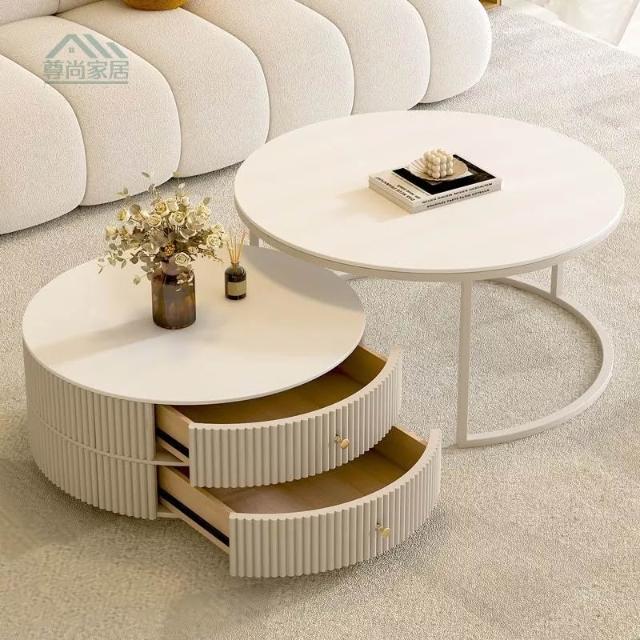 🔥全臺免運🔥 奶油風茶几 岩板茶几 客廳茶几 客廳桌子 家用小戶型茶几組合 多功能茶几 實木茶几 圓形茶几 茶幾 桌