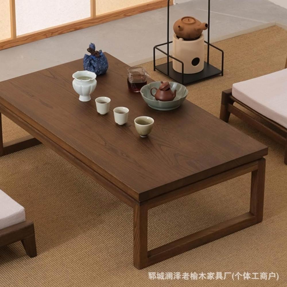 家用老榆木實木茶几飄窗桌塌塌米陽臺小茶桌日式禪意小矮凳炕桌