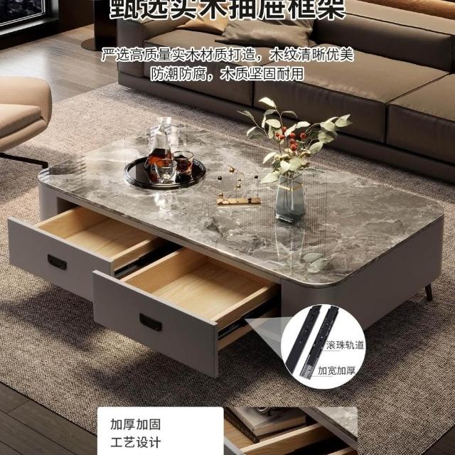 岩板茶几客廳家用高級感新款小戶型輕奢桌落地茶桌電視櫃組合