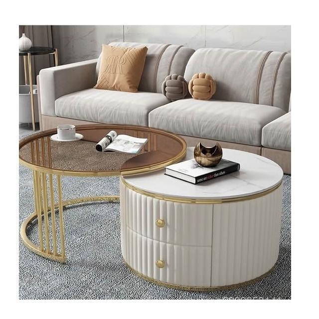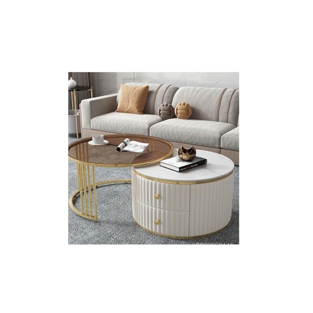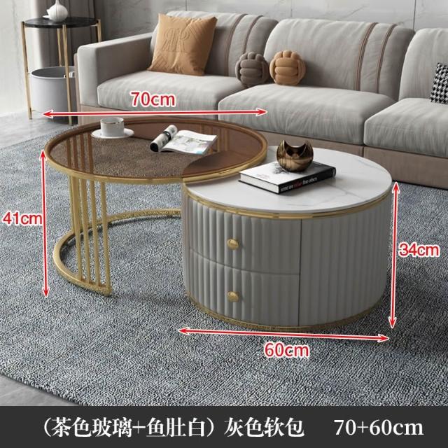 免運茶幾客廳家用小戶型輕奢現代簡約圓形移動小茶桌陽台岩板茶台組合
