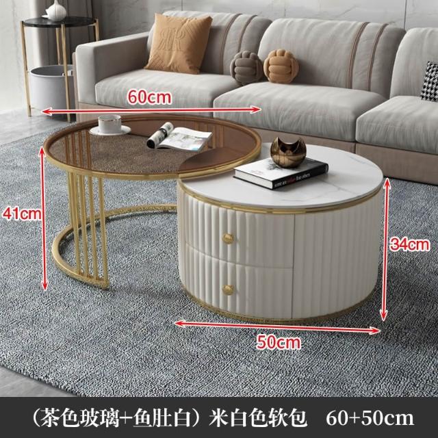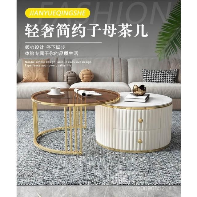 免運茶幾客廳家用小戶型輕奢現代簡約圓形移動小茶桌陽台岩板茶台組合