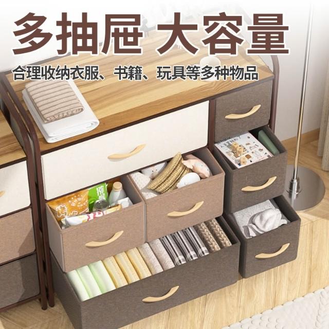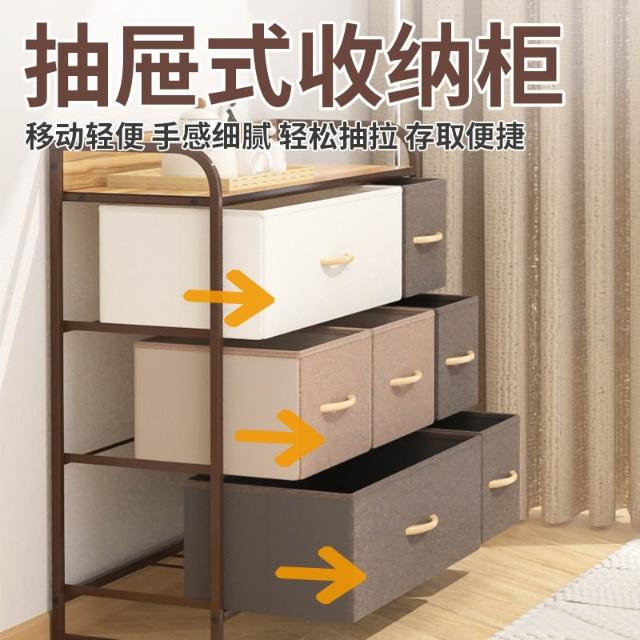 家用儲物收納置物架多層抽屜整理櫃可移動布藝鞋架展示架