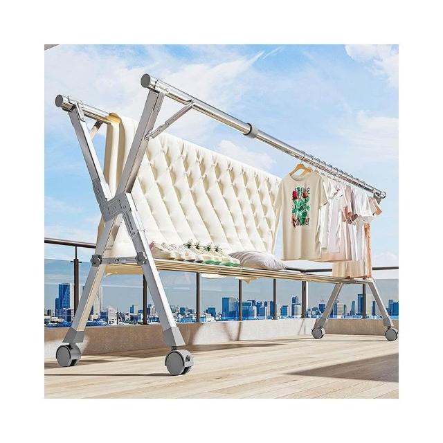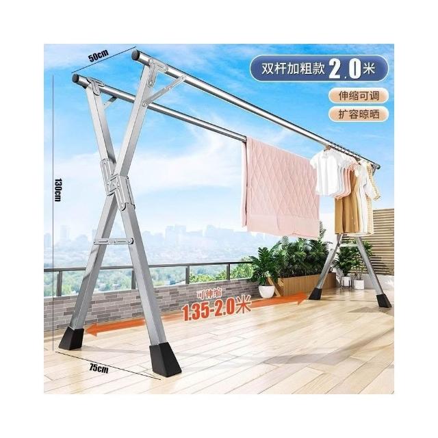折疊晾衣架 落地架 雙杆晾衣架 室外衣架 伸縮杆曬被子神器