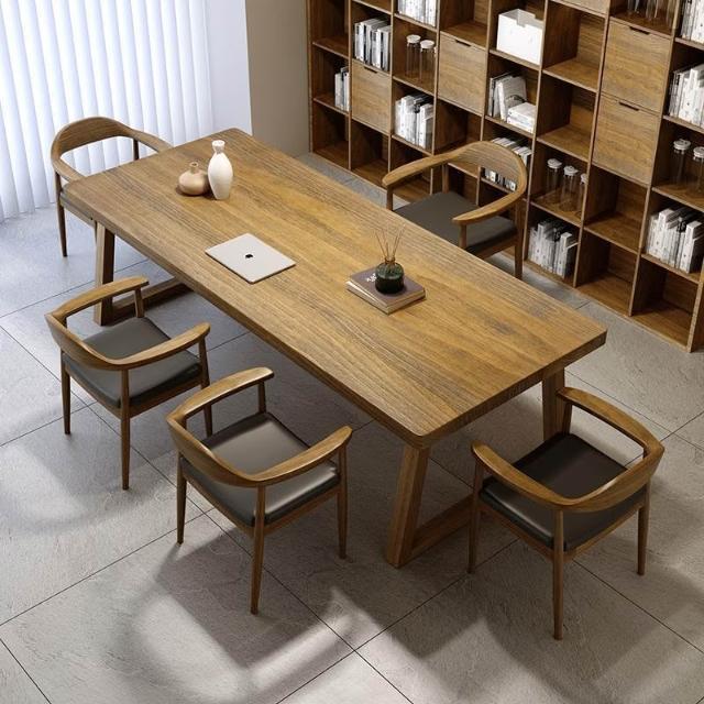 美式實木會議桌 工作室長方形商務洽談桌椅 公司職員培訓會議桌