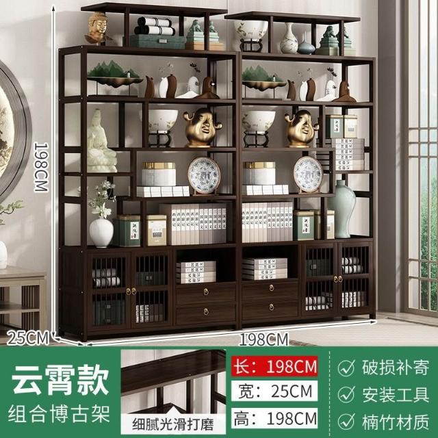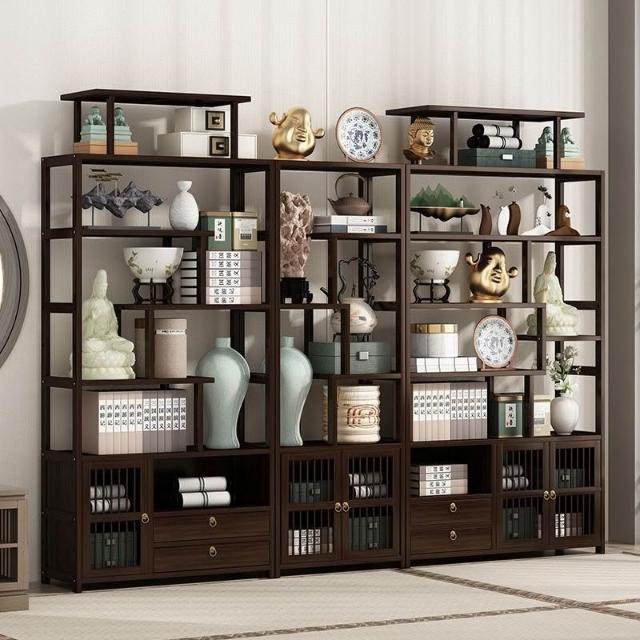 實木博古架新中式客廳多寶閣書櫃置物架古董古玩架子茶葉架展示櫃