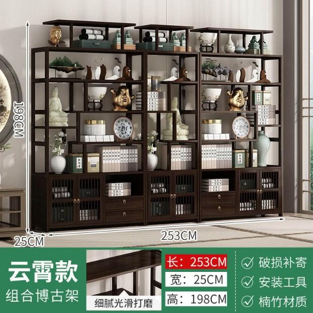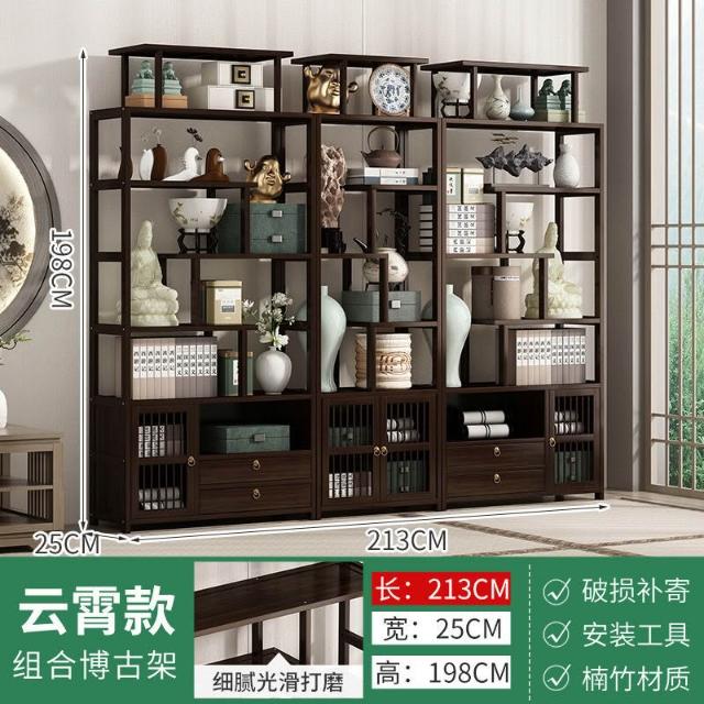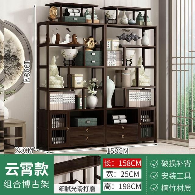 實木博古架新中式客廳多寶閣書櫃置物架古董古玩架子茶葉架展示櫃