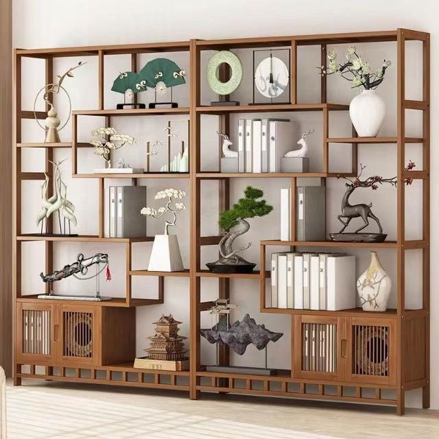 博古架實木新中式多寶閣茶葉架展示櫃擺件櫃茶具置物架客廳書架子