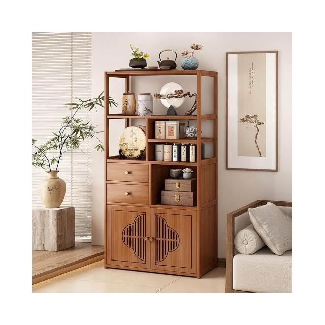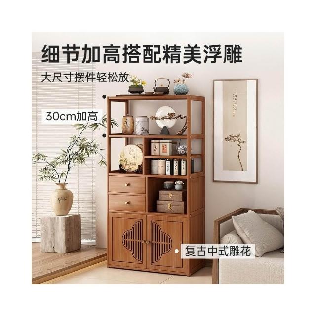 新中式 浮雕 博古架 擺櫃 茶具 擺件 展示架 多功能 茶櫃 置物架