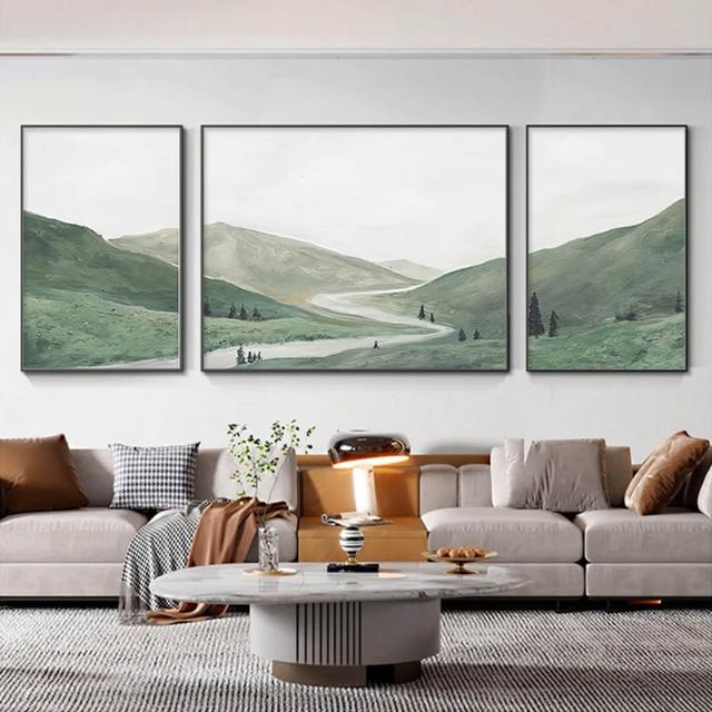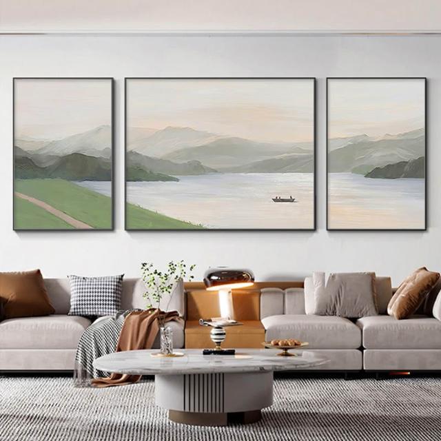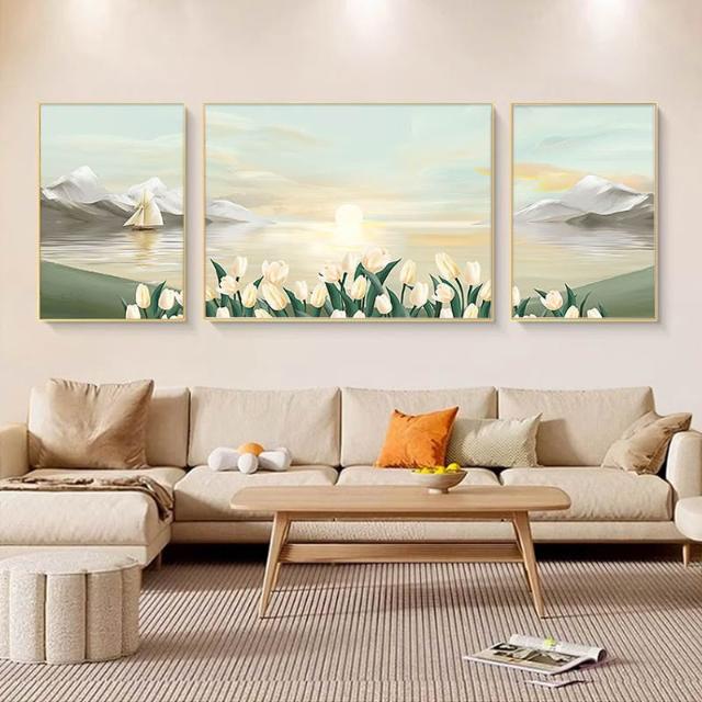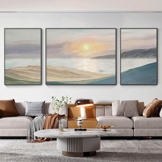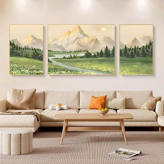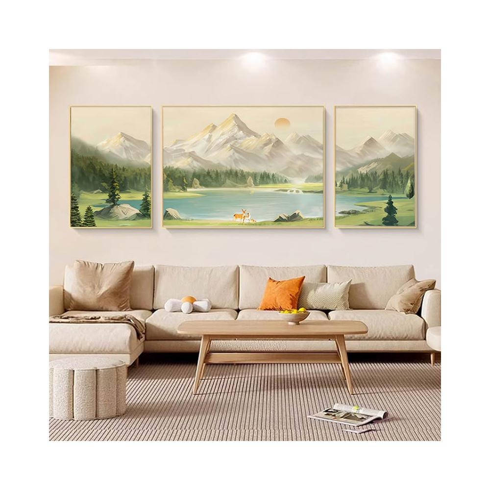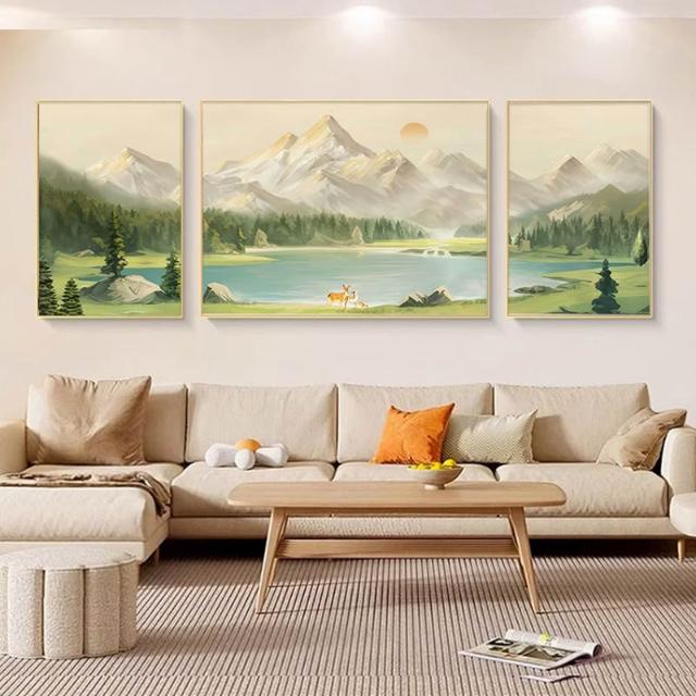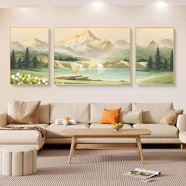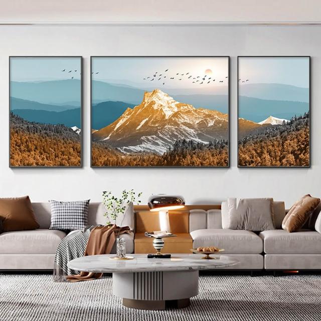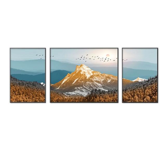 日照金山客廳裝飾畫奶油風山水風景掛畫輕奢大氣沙發背景牆三聯畫