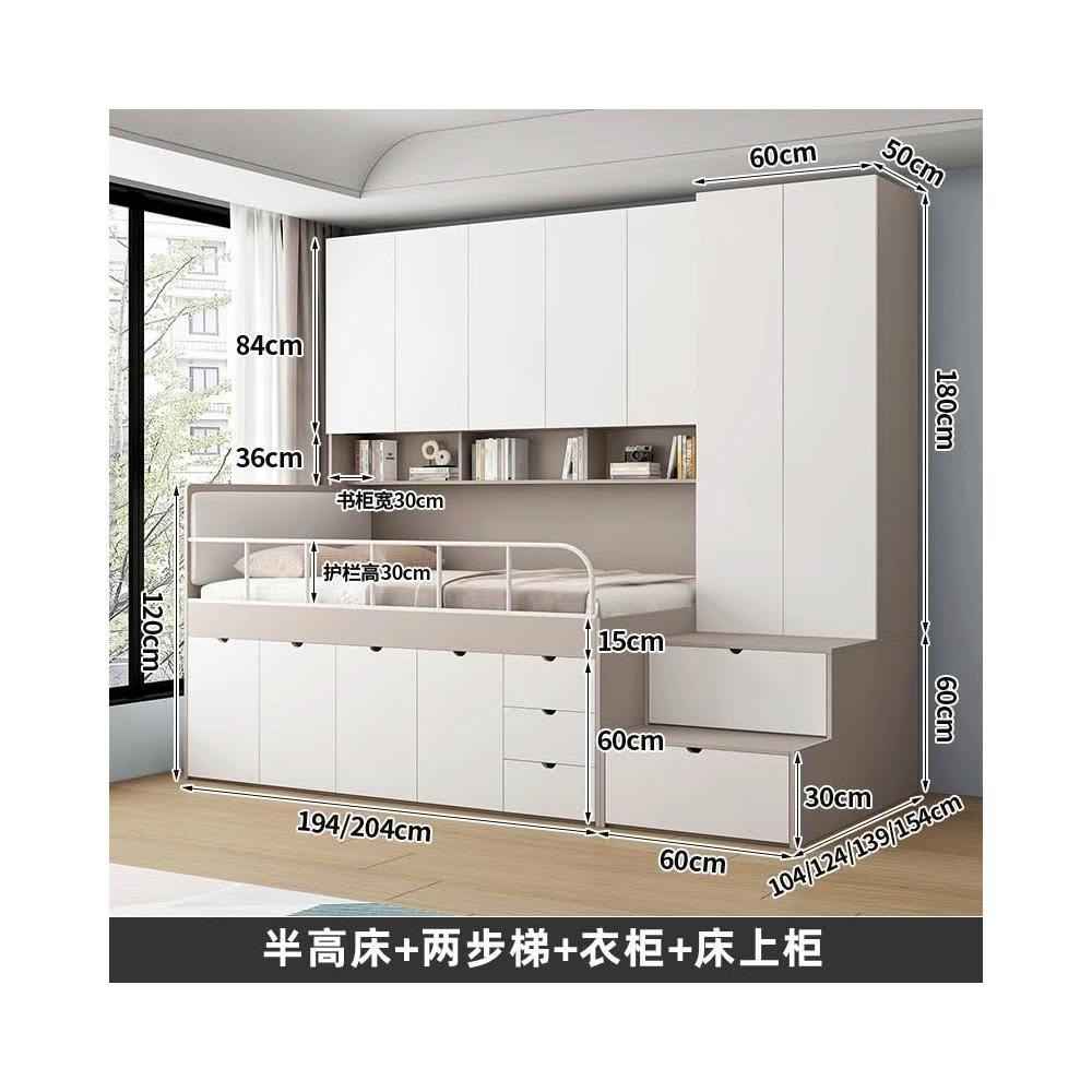半高床 臥室 儲物 榻榻米床 書架 樓梯 櫃 組合 衣櫃 床 一體