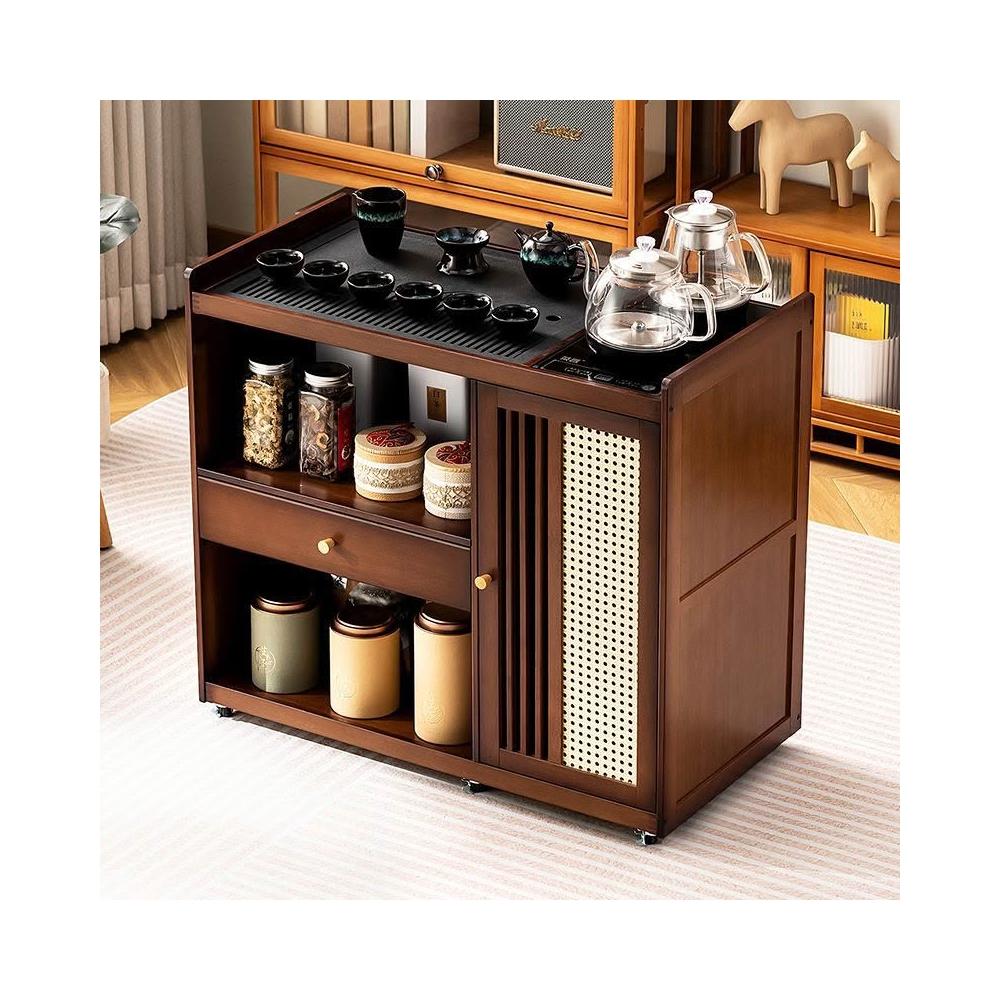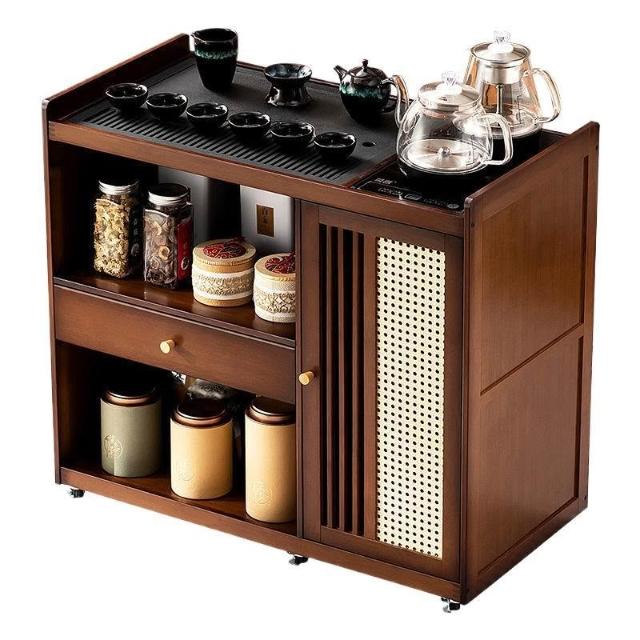移動茶桌小茶臺燒水壺一體家用茶水櫃實木茶几茶車陽臺煮泡茶桌子