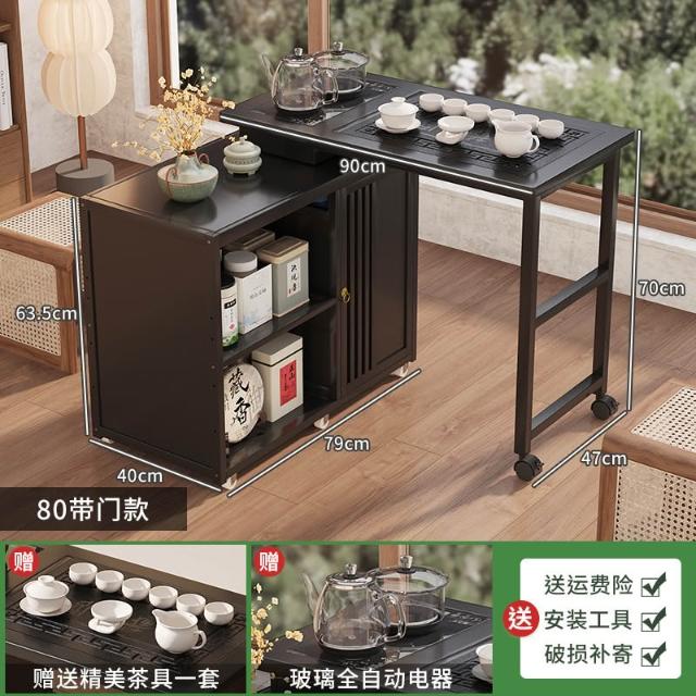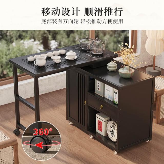現代簡約茶桌組合陽臺可移動旋轉功夫泡茶一體家用小戶型茶几茶臺