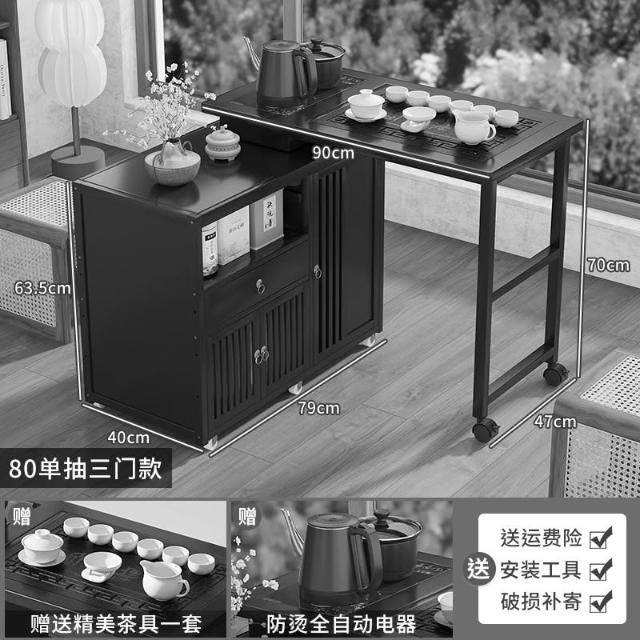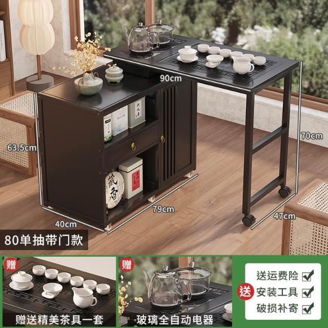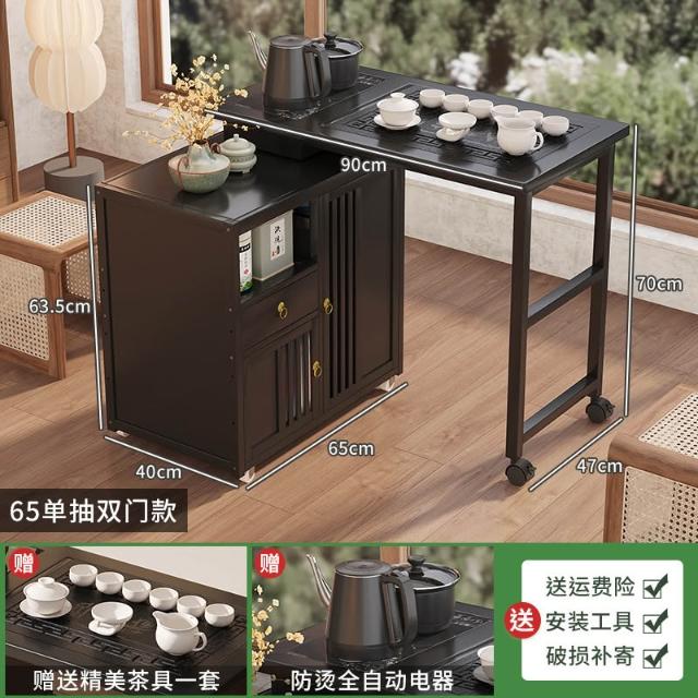 現代簡約茶桌組合陽臺可移動旋轉功夫泡茶一體家用小戶型茶几茶臺