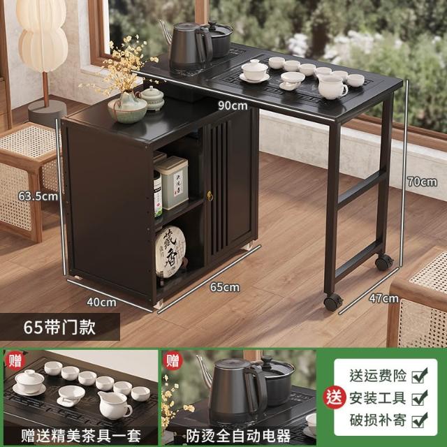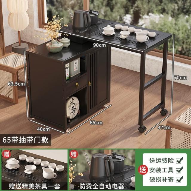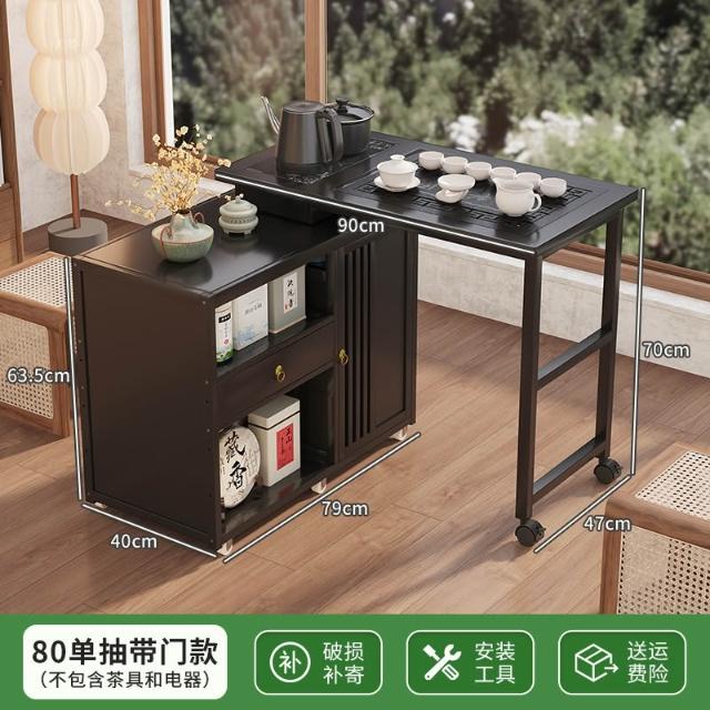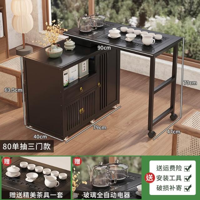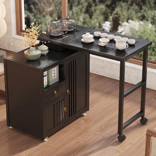 現代簡約茶桌組合陽臺可移動旋轉功夫泡茶一體家用小戶型茶几茶臺