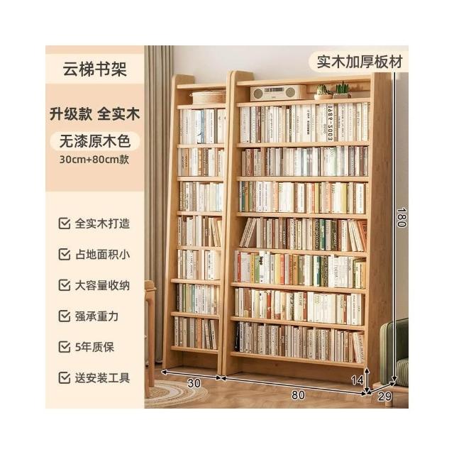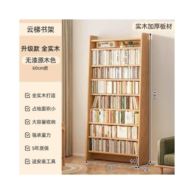 全實木 落地架 書架 家用 置物架 松木 書桌 收納架 簡易 客廳 書櫃