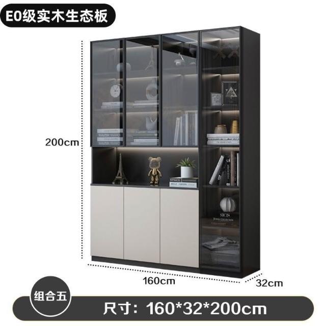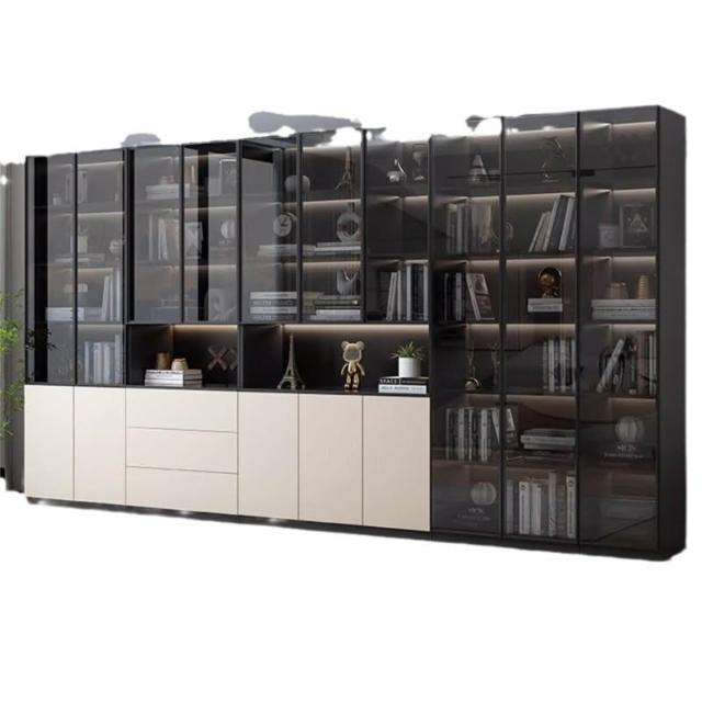 家用客廳儲物櫃輕奢實木書櫃玻璃門組合展示櫃一體整牆防塵收納櫃