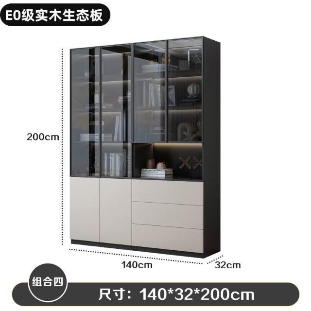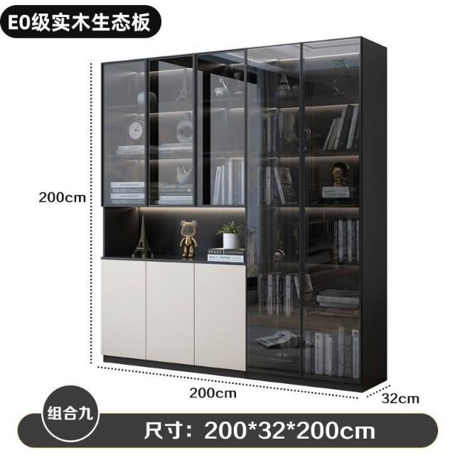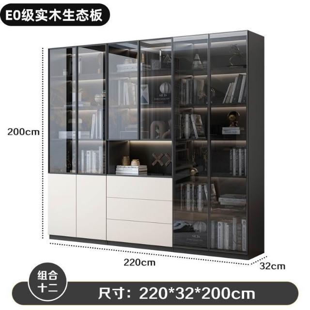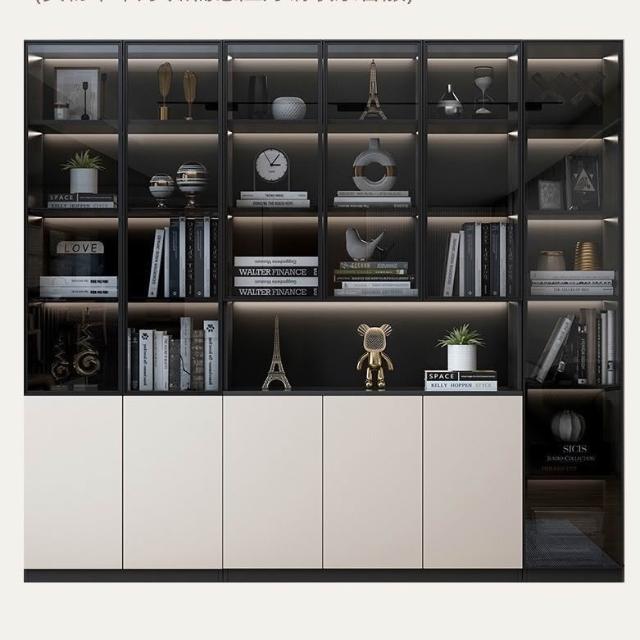 家用客廳儲物櫃輕奢實木書櫃玻璃門組合展示櫃一體整牆防塵收納櫃