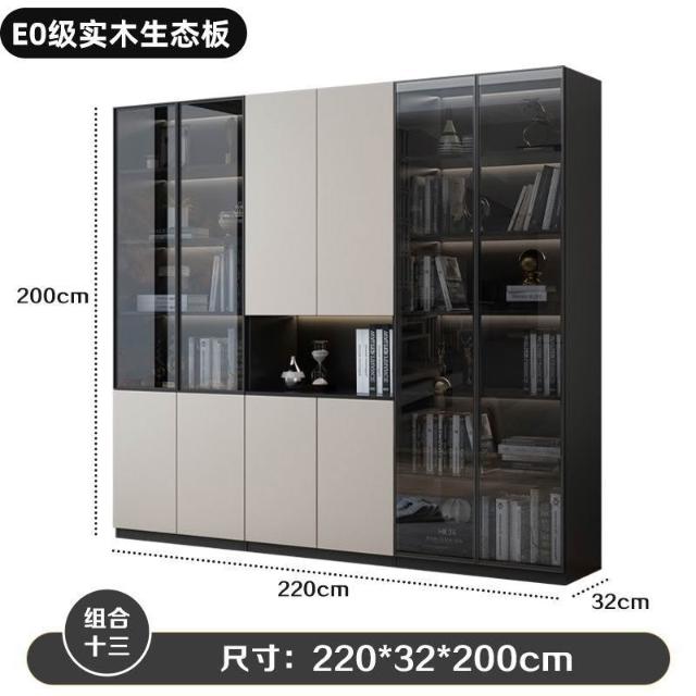家用客廳儲物櫃輕奢實木書櫃玻璃門組合展示櫃一體整牆防塵收納櫃