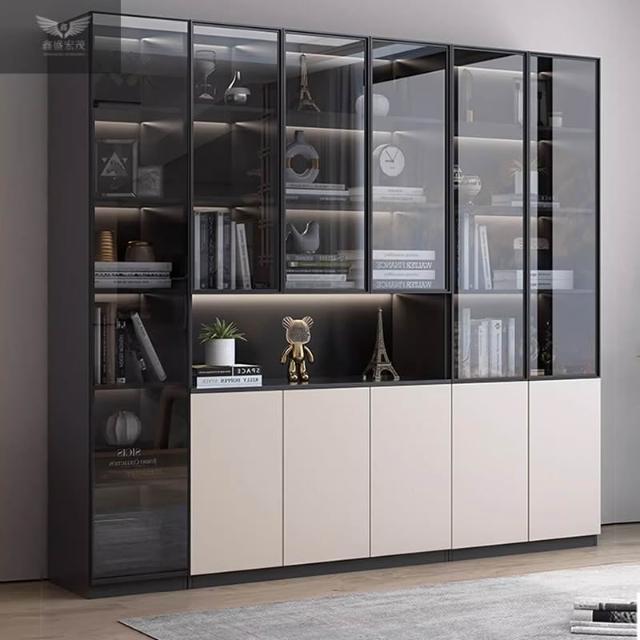家用客廳儲物櫃輕奢實木書櫃玻璃門組合展示櫃一體整牆防塵收納櫃