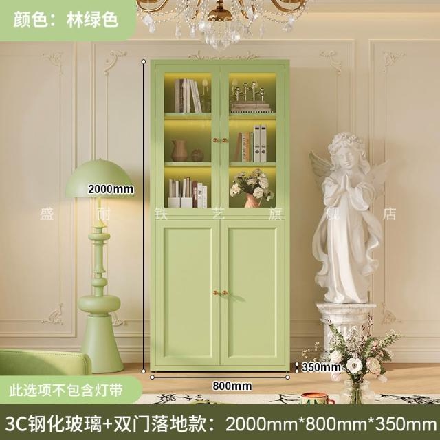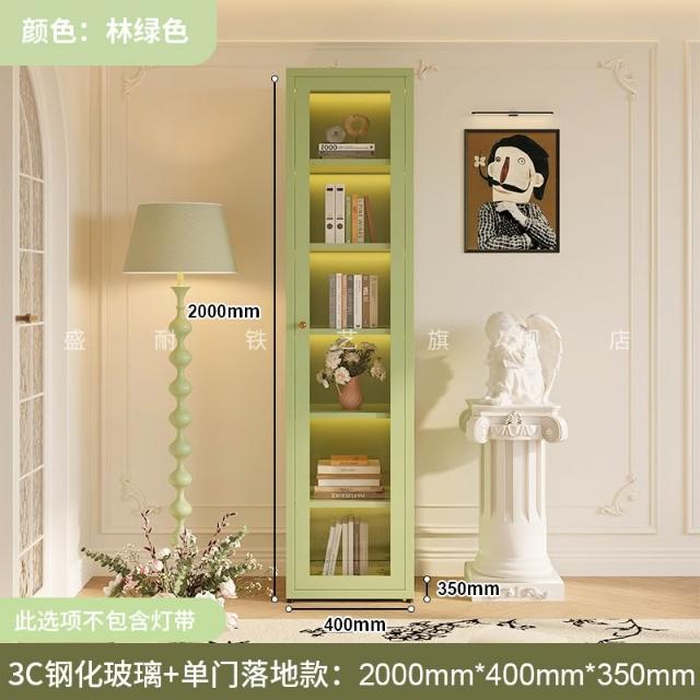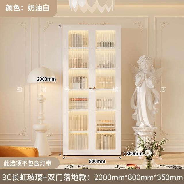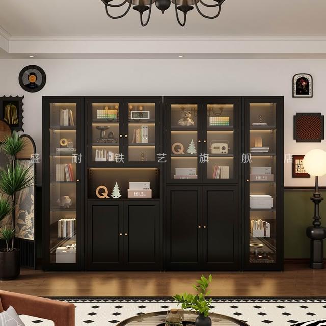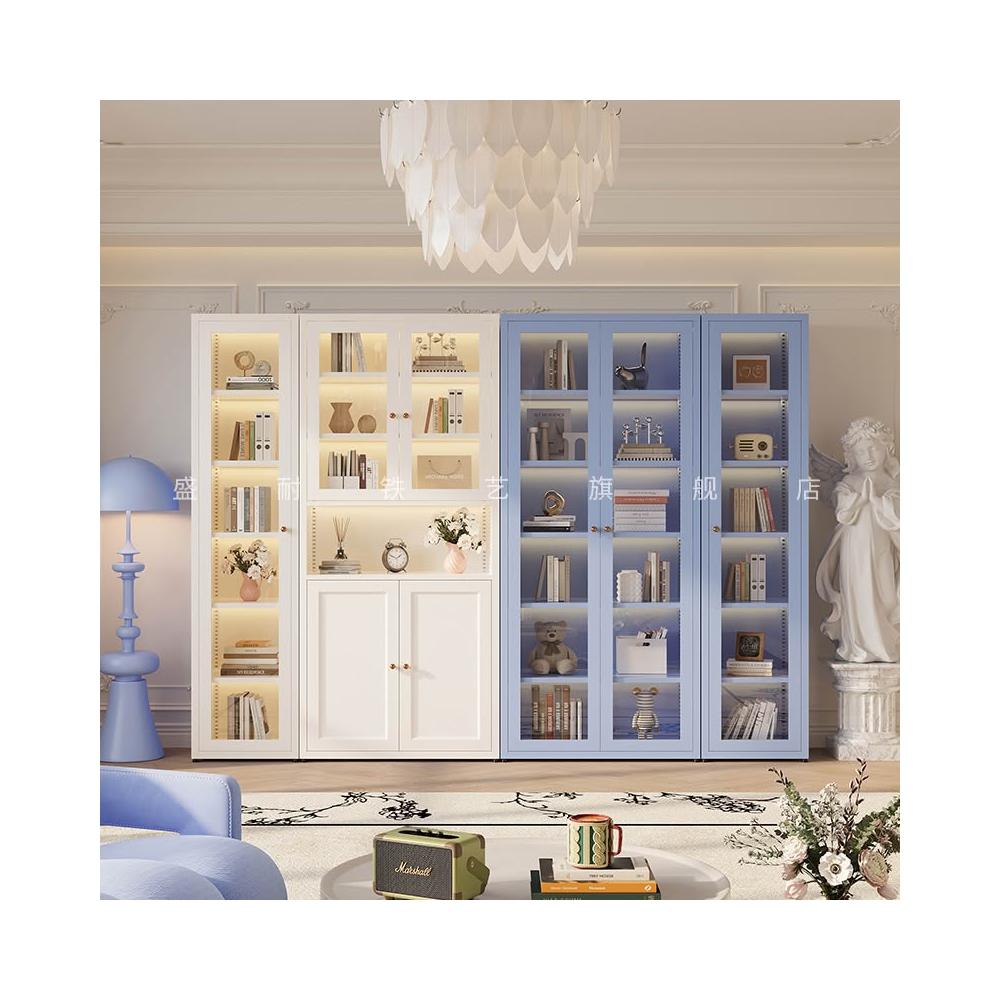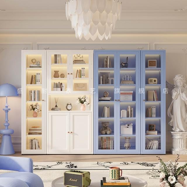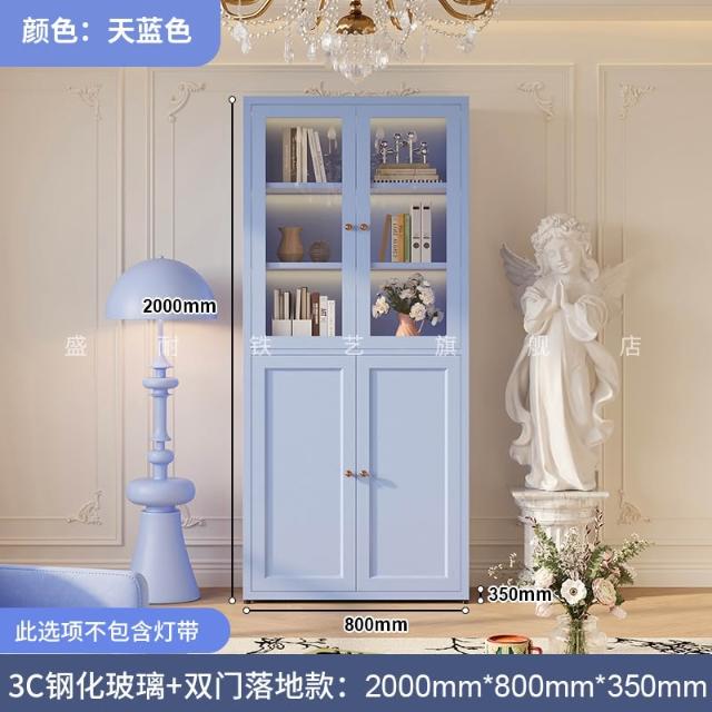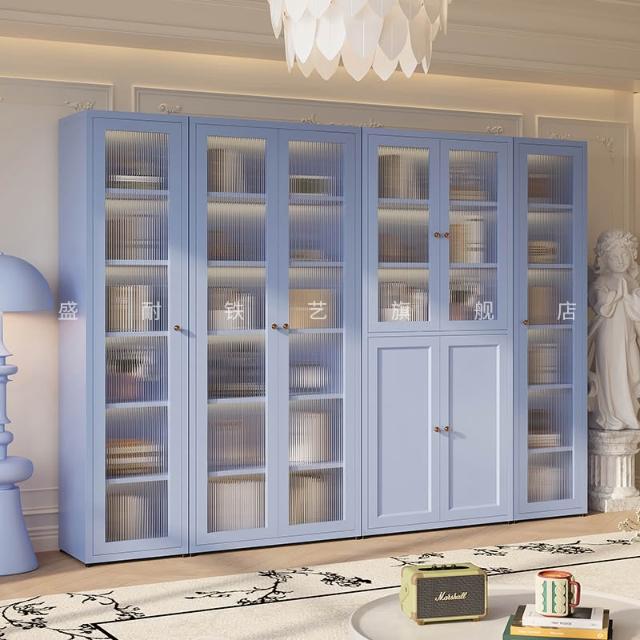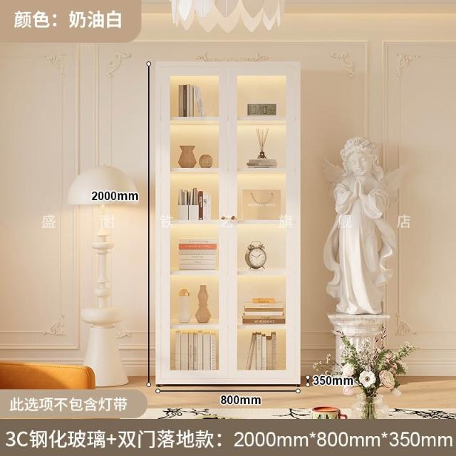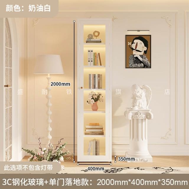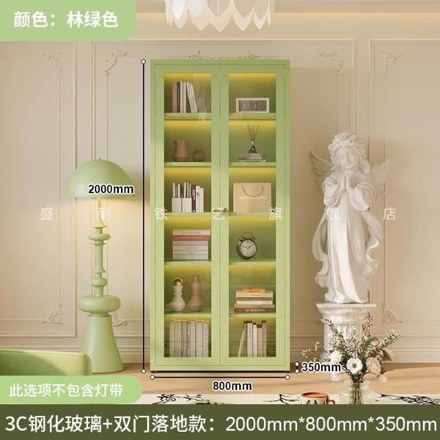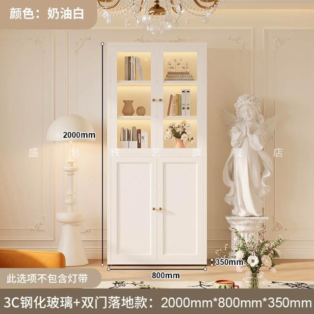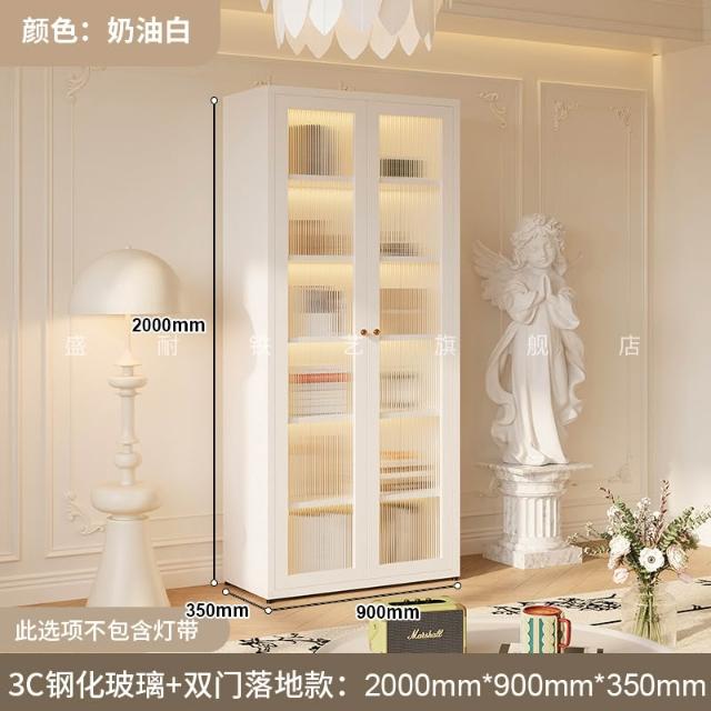 鋼制落地玻璃門書櫃輕奢置物櫃書架法式簡約客廳儲物櫃家用展示櫃