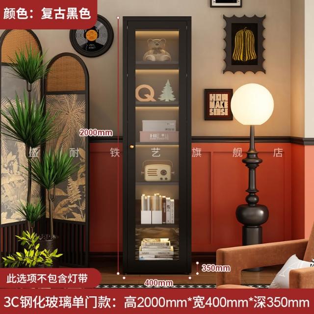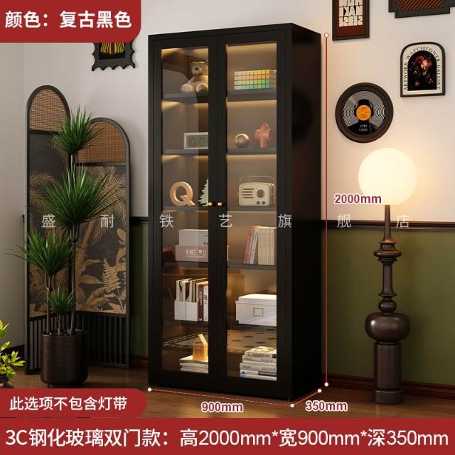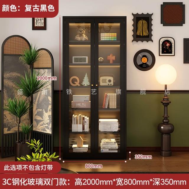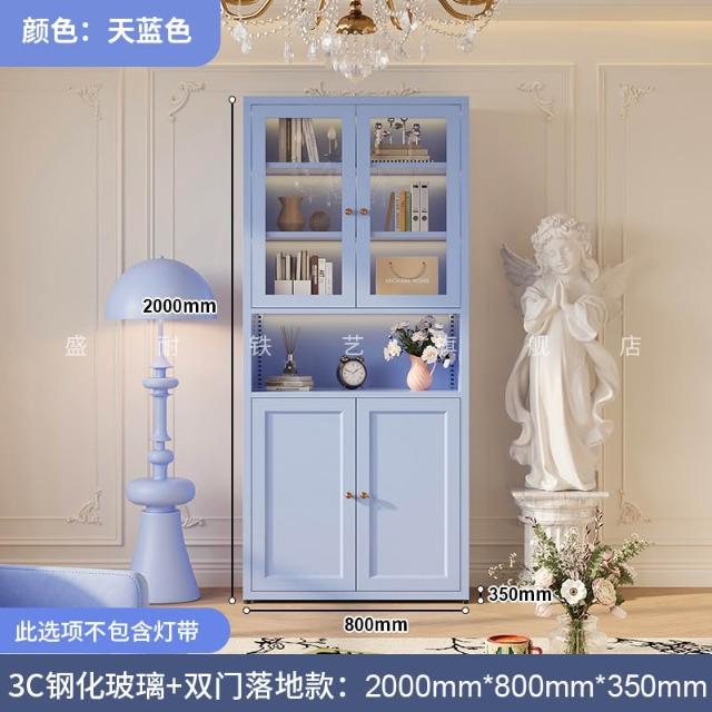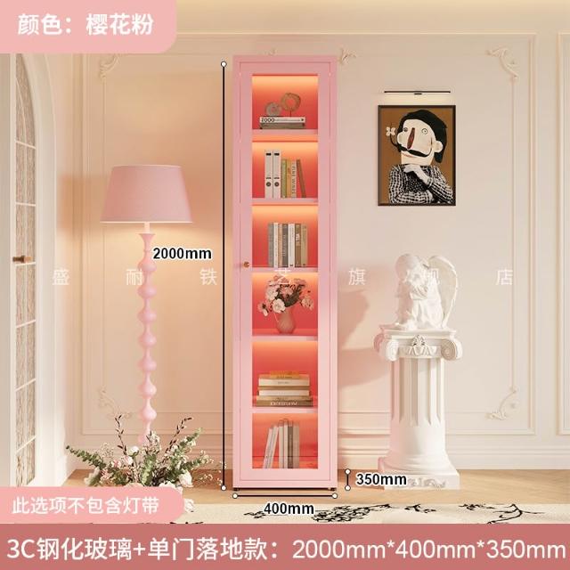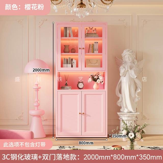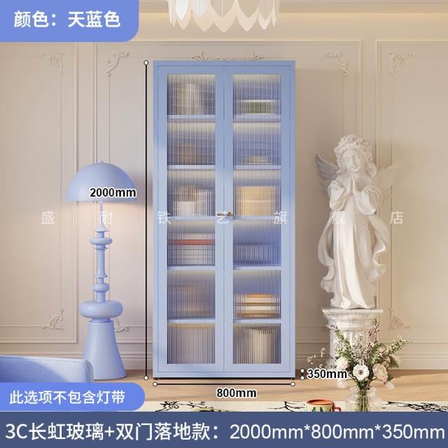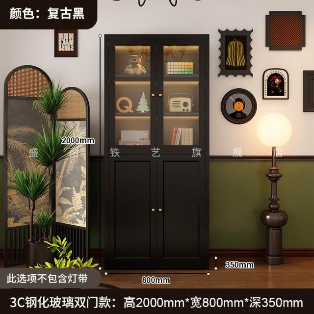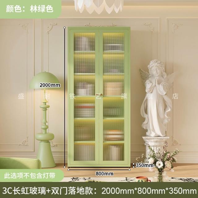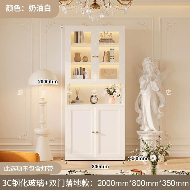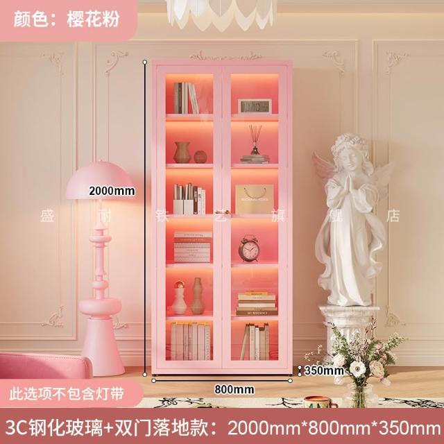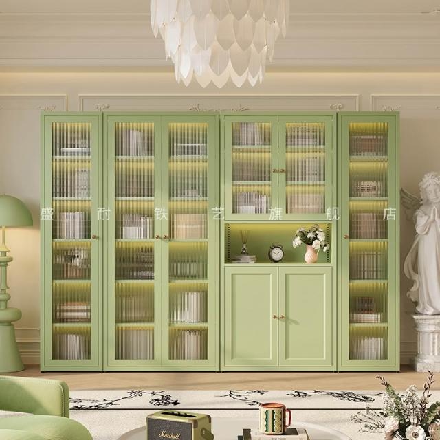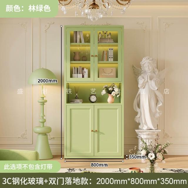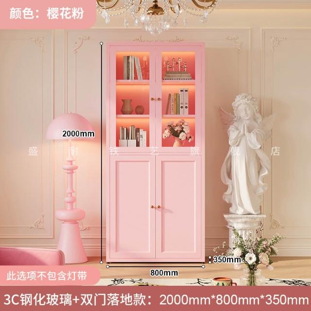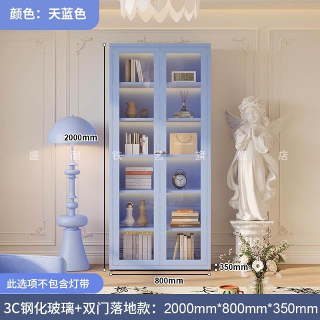 鋼制落地玻璃門書櫃輕奢置物櫃書架法式簡約客廳儲物櫃家用展示櫃