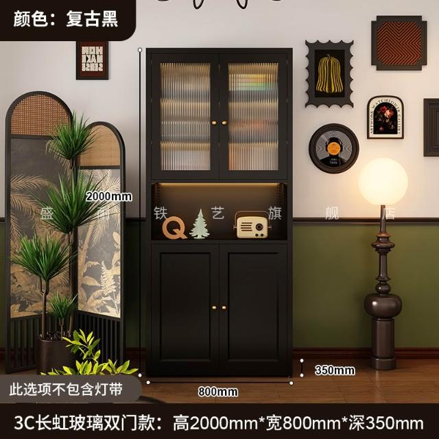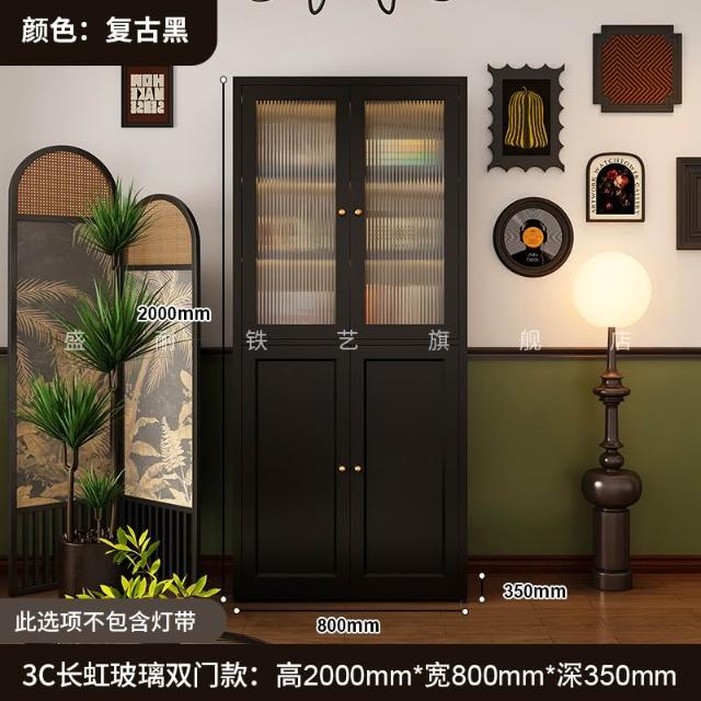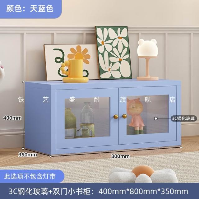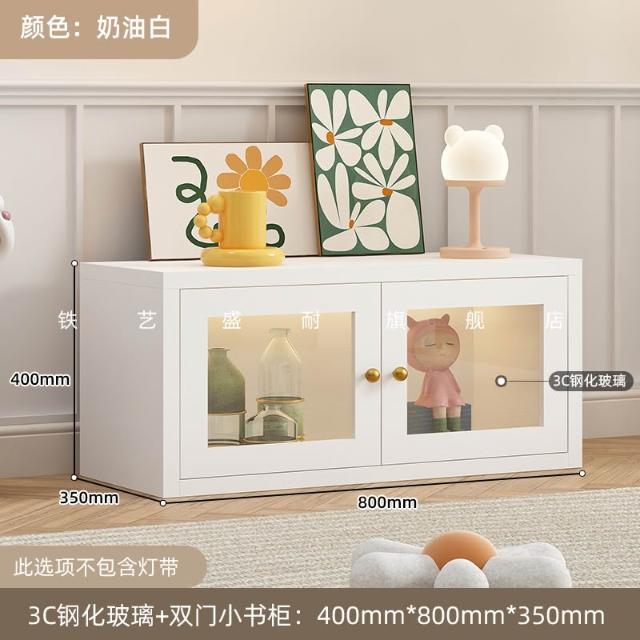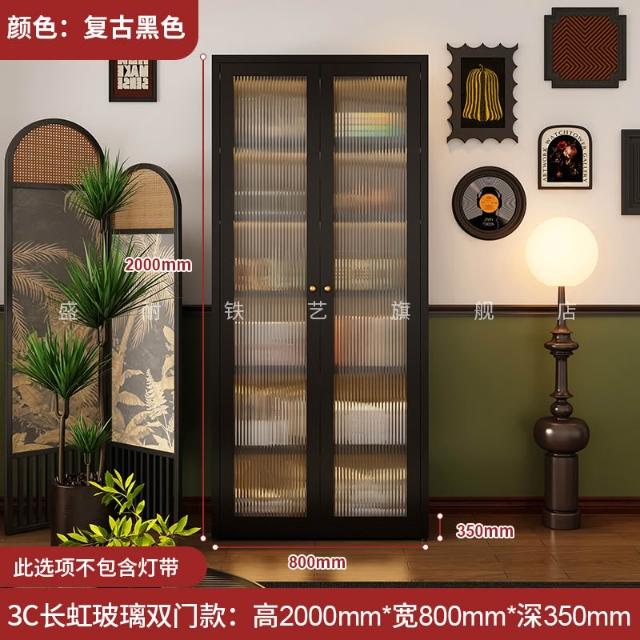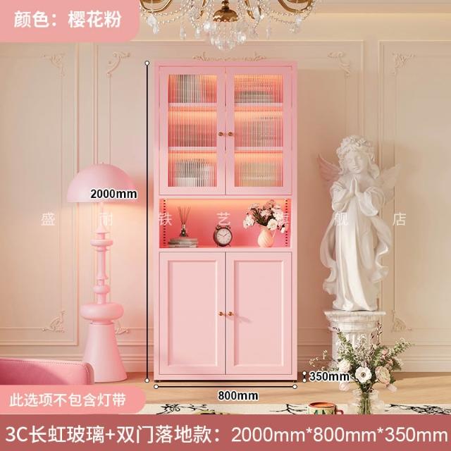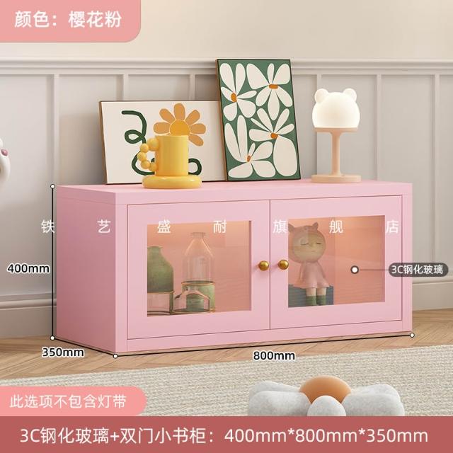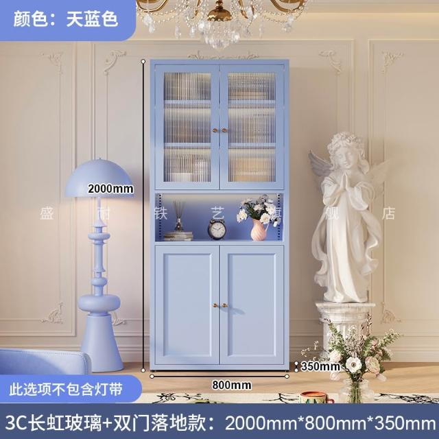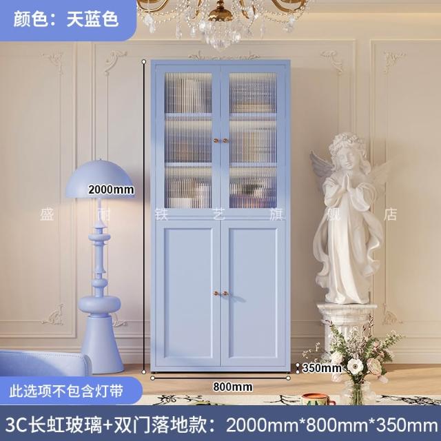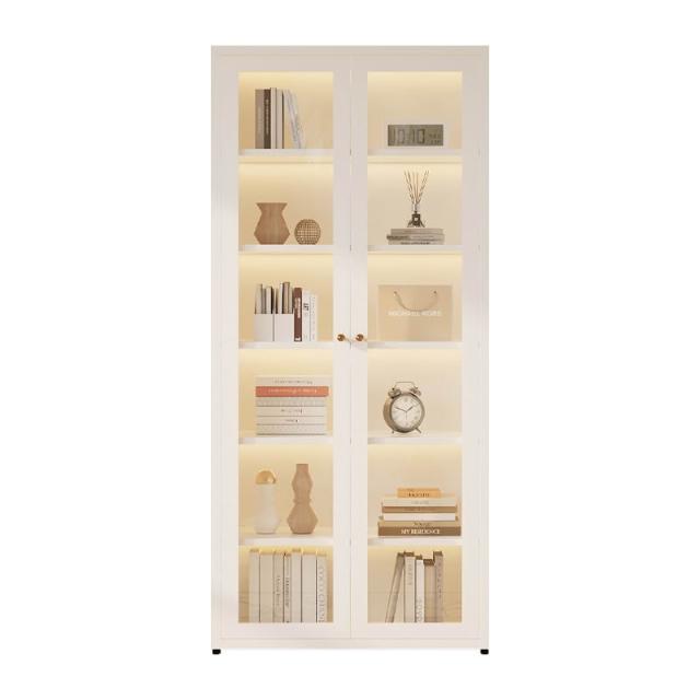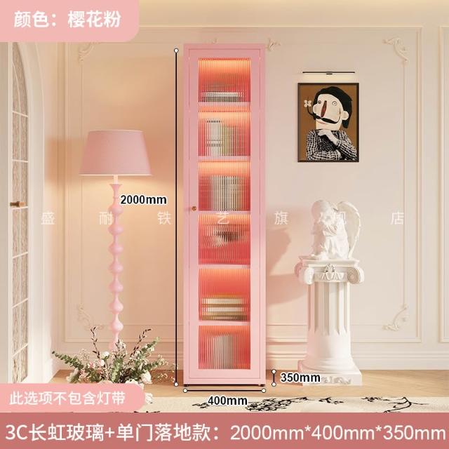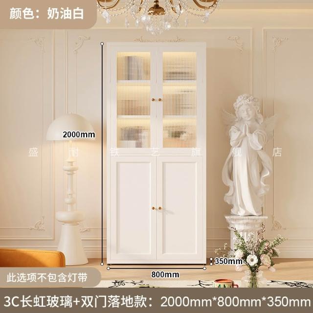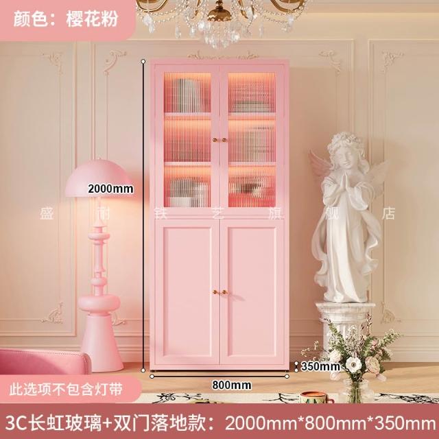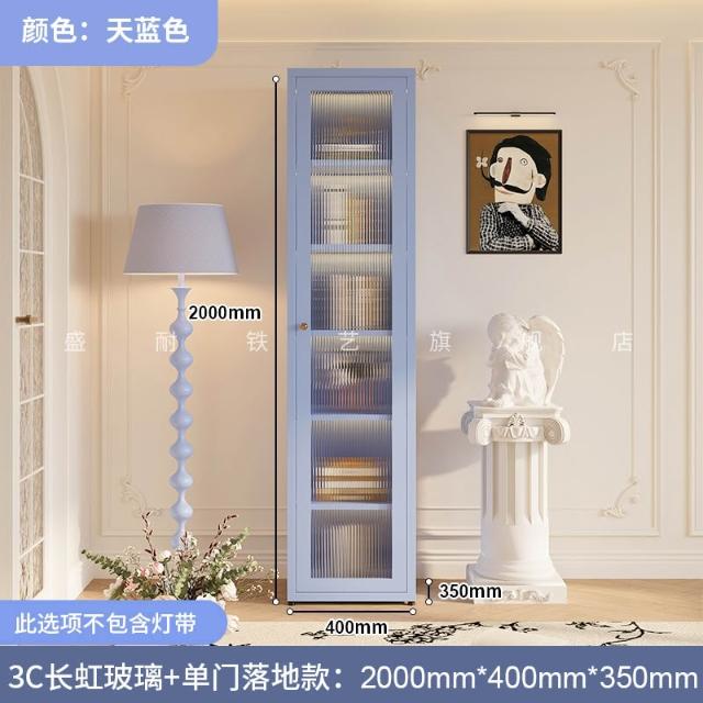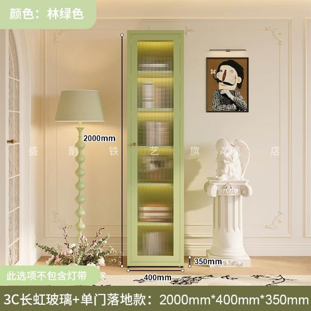 鋼制落地玻璃門書櫃輕奢置物櫃書架法式簡約客廳儲物櫃家用展示櫃