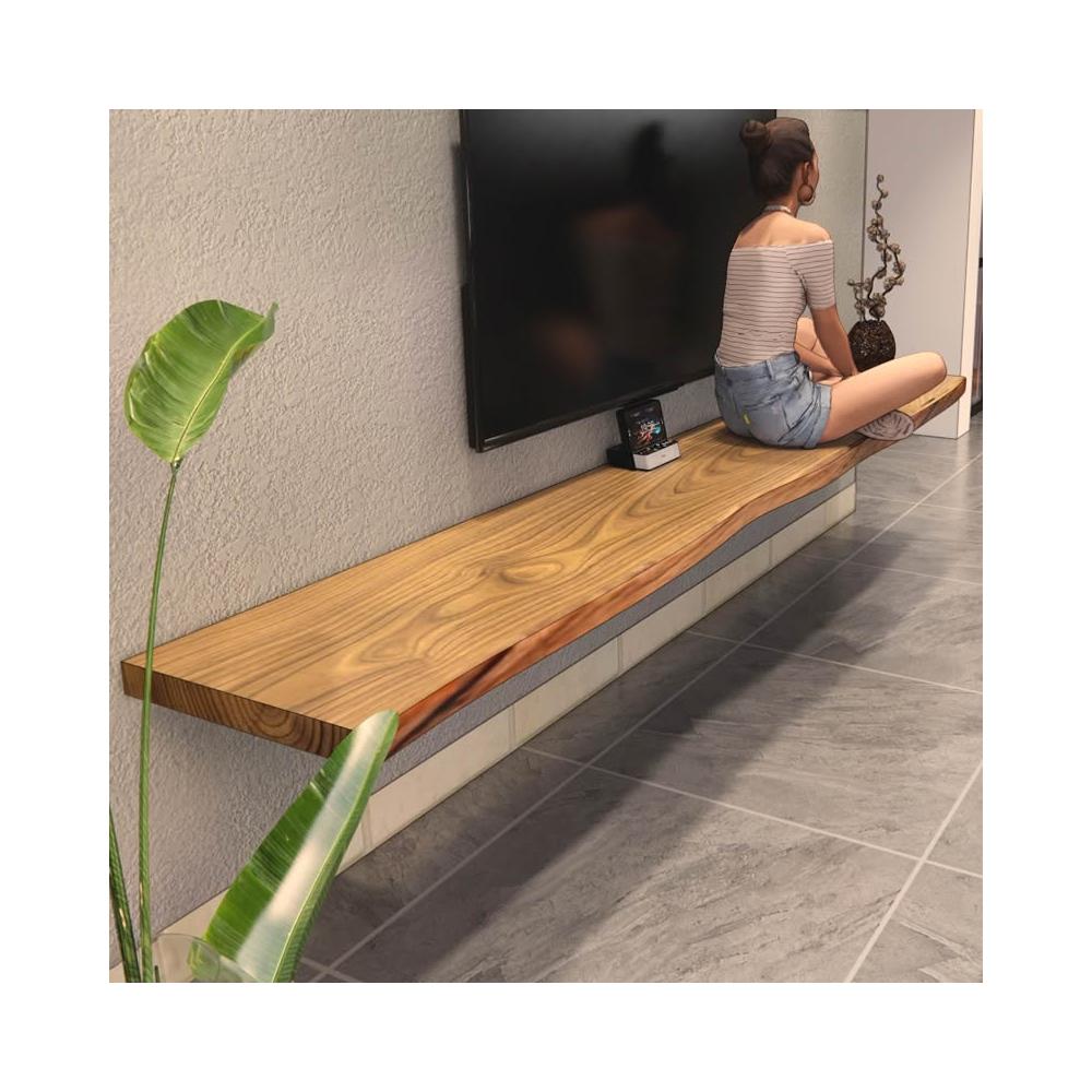 客廳簡約現代原木掛牆電視櫃整塊實木一字隔板小戶型懸空實木板