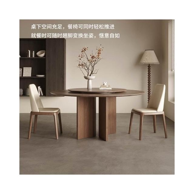 法式復古風實木圓餐桌椅組合黑胡桃木家用小戶型中古風圓形飯桌