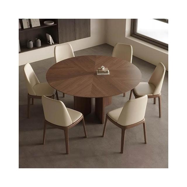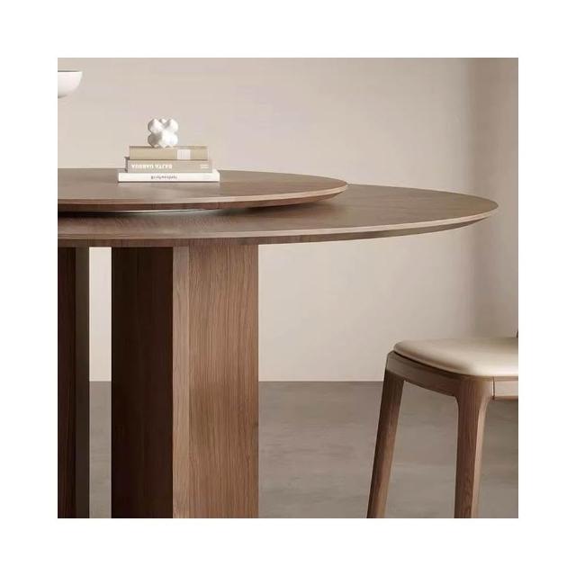 法式復古風實木圓餐桌椅組合黑胡桃木家用小戶型中古風圓形飯桌