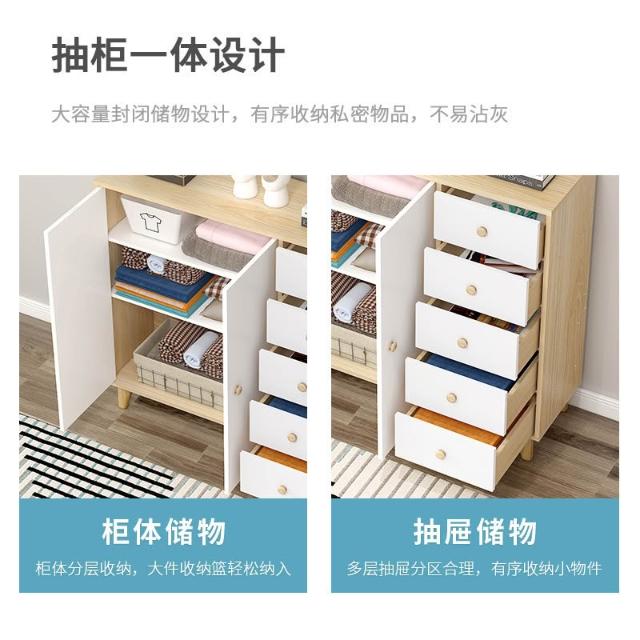 北歐五斗櫃收納櫃臥室簡約現代實木腿儲物櫃靠牆組合抽屜櫃子矮櫃