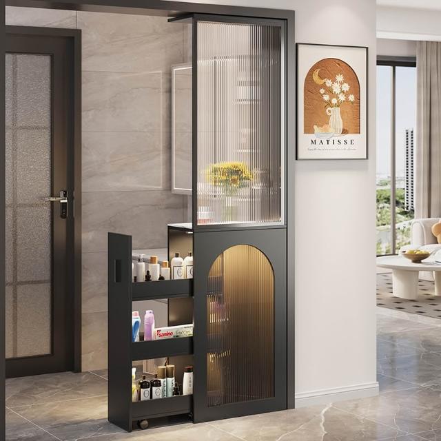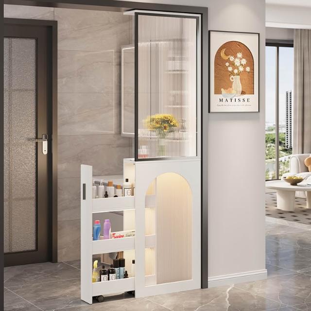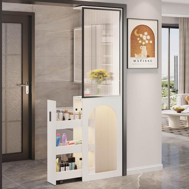 客廳半牆 隔斷櫃 衛生間幹區 儲物櫃 窄櫃 法式奶油風 玄關櫃 新款 屏風櫃 置物櫃