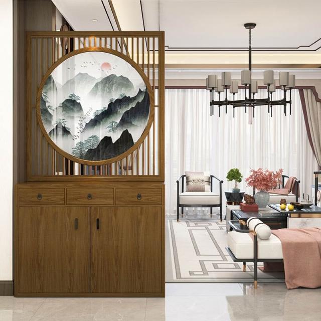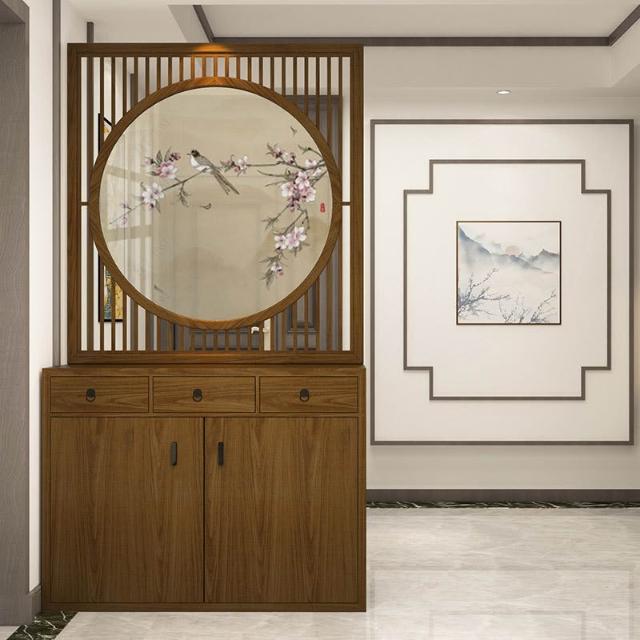 新中式 實木 玄關櫃 屏風 隔斷 辦公室 入戶進門遮擋 臥室遮擋 儲物櫃 鞋櫃
