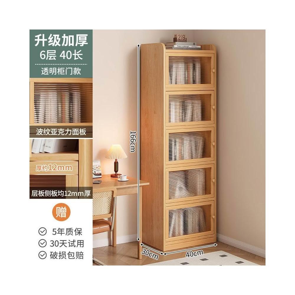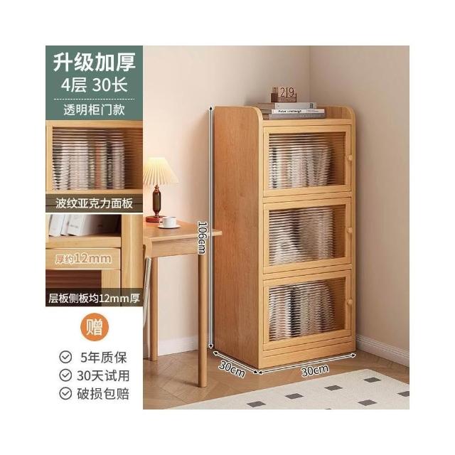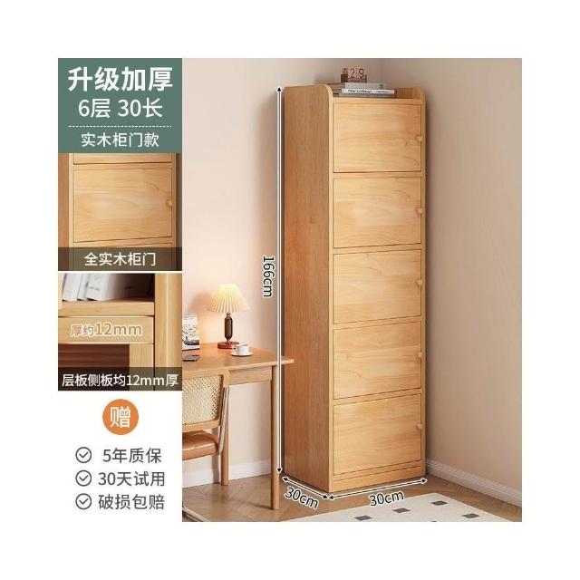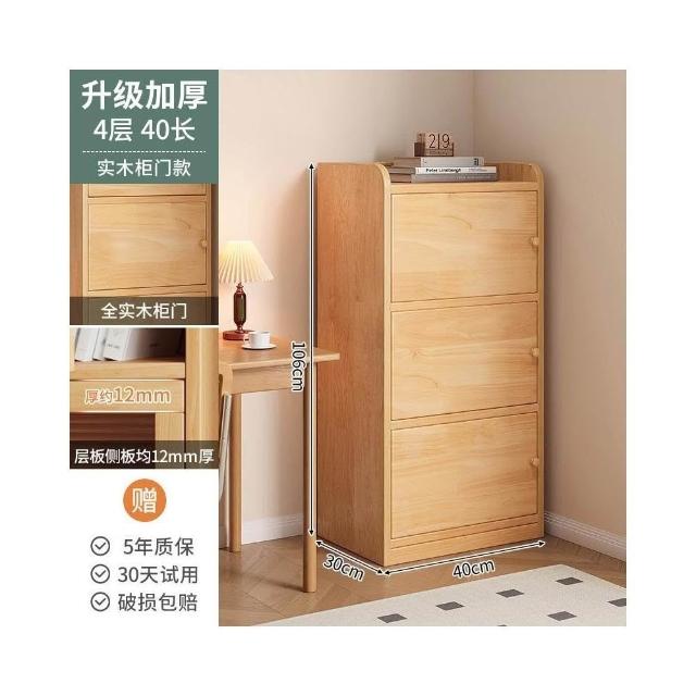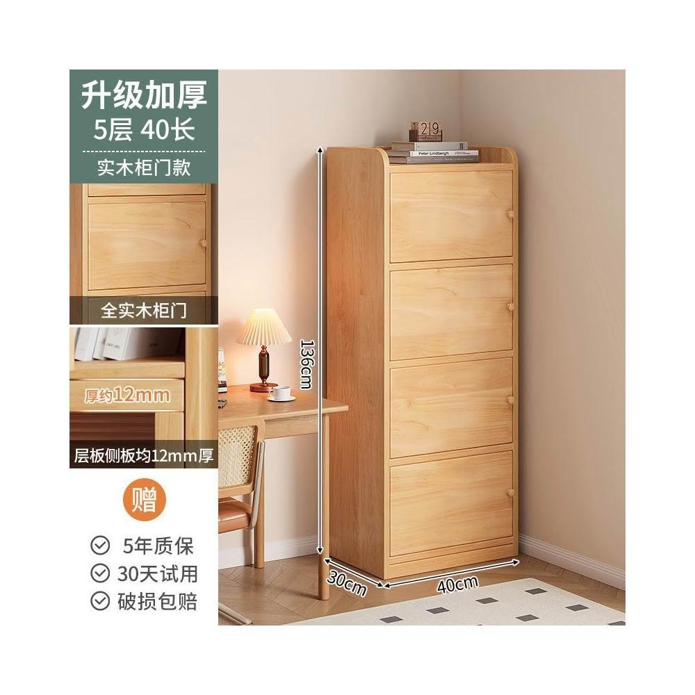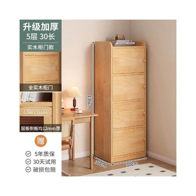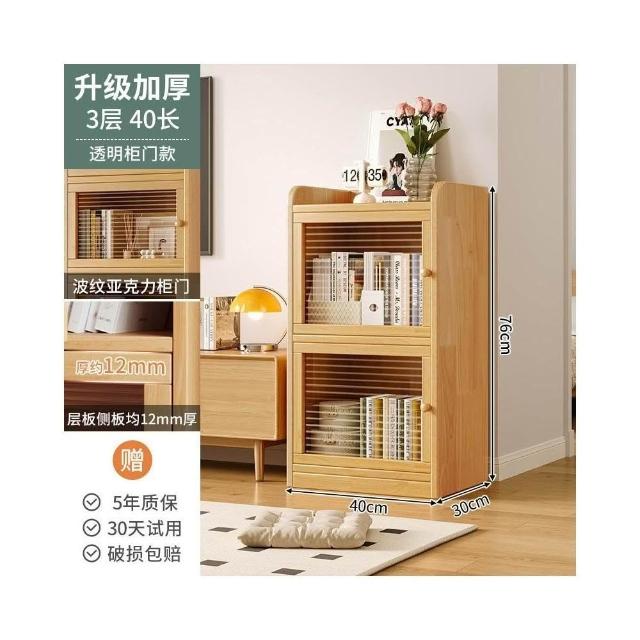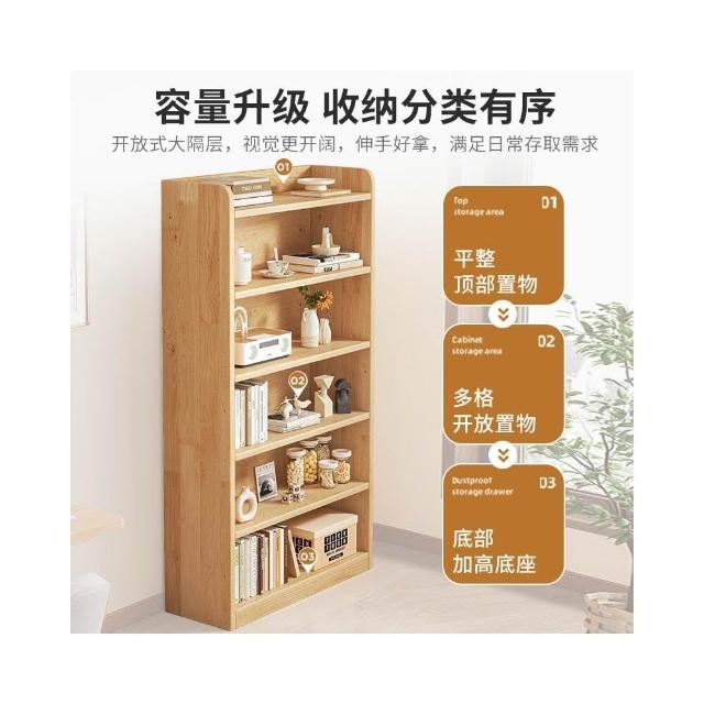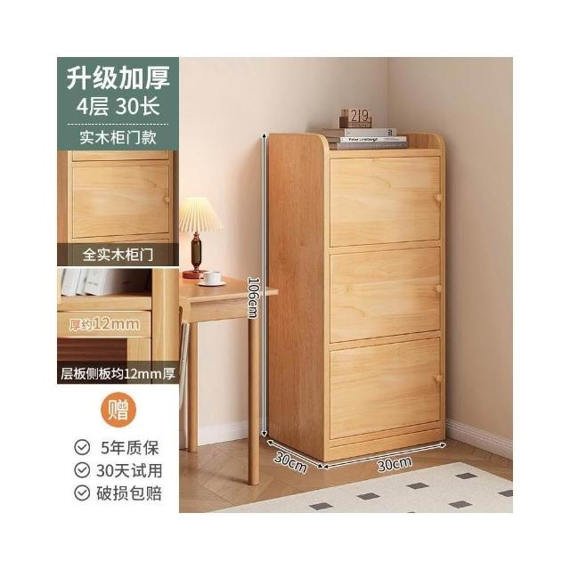 實木書櫃 書桌旁小櫃子 家用 落地防塵儲物 窄櫃 客廳置物矮櫃 靠牆書架
