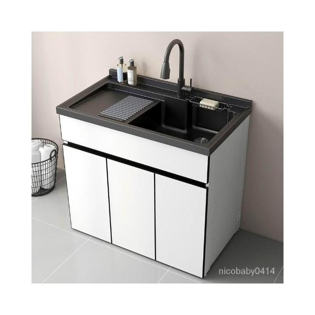 免運到宅 爆款洗衣槽 洗衣台 洗衣櫃 洗衣檯 洗手台 太空鋁納米洗衣櫃 組閤洗衣池帶搓衣闆浴室櫃落地櫃落地式水槽水龍頭