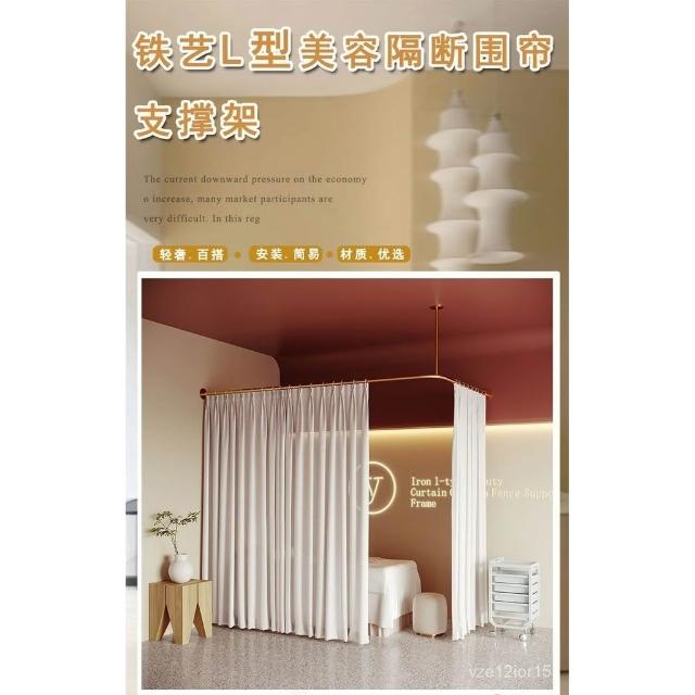 美容院L型鐵藝 美容床拉簾 理療床 隔斷簾 養生館圍簾 布簾支撐架