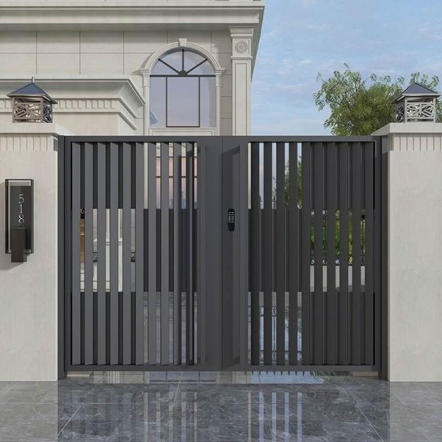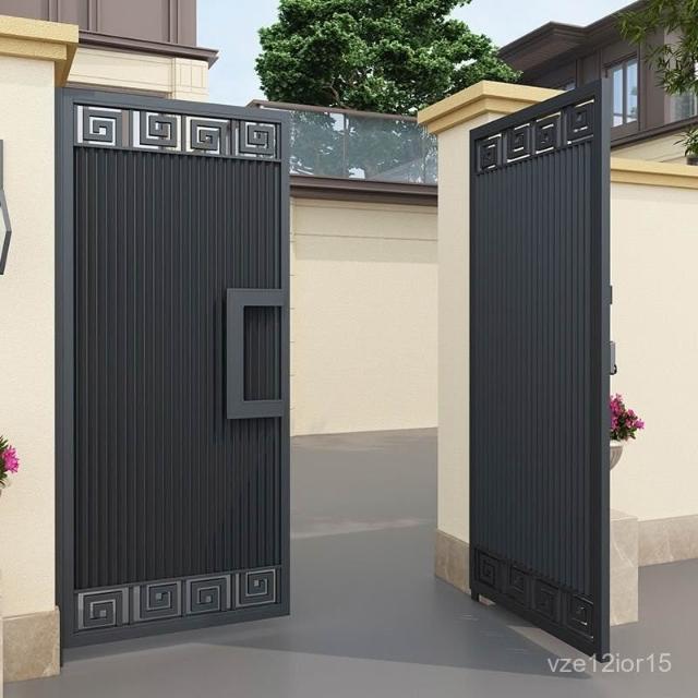 鋁閤金別墅庭院大門花園單雙開鐵藝入戶現代中式簡約不銹鋼電動門