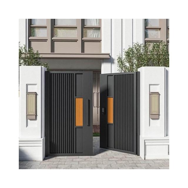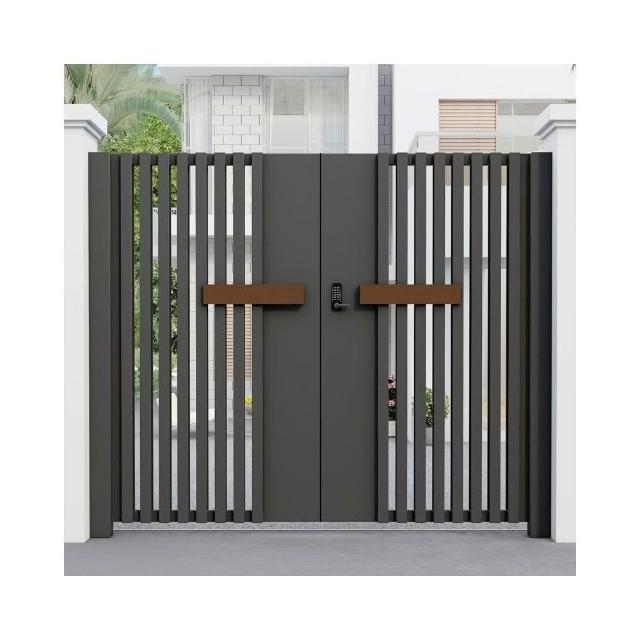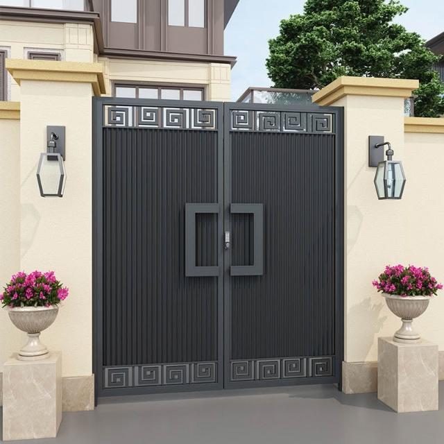 鋁閤金別墅庭院大門花園單雙開鐵藝入戶現代中式簡約不銹鋼電動門