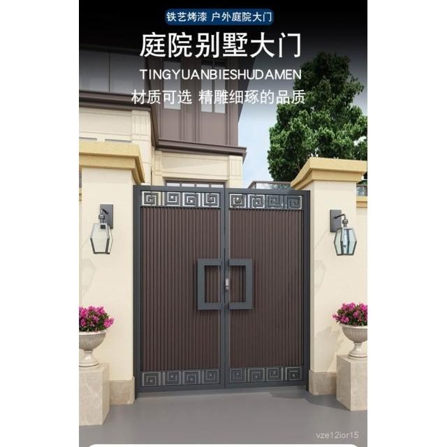 鋁閤金別墅庭院大門花園單雙開鐵藝入戶現代中式簡約不銹鋼電動門