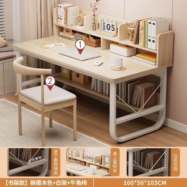 🐌 宅配免運 簡約學習寫字桌 辦公桌椅組閤 書桌 書架 一體 傢用電腦桌臺式辦公桌 傢用桌子 學習桌 會議桌