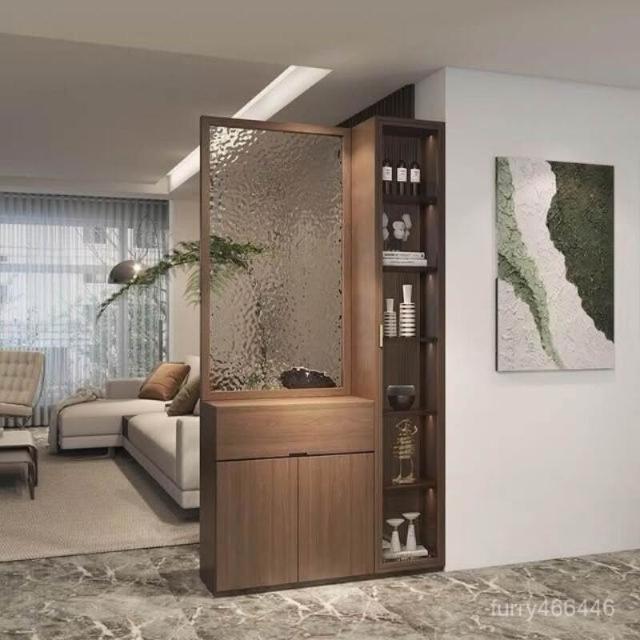 長虹玻璃 隔斷櫃 屏風 客廳入戶進門 玄關櫃 簡約現代 透光 置物架 實木鞋櫃