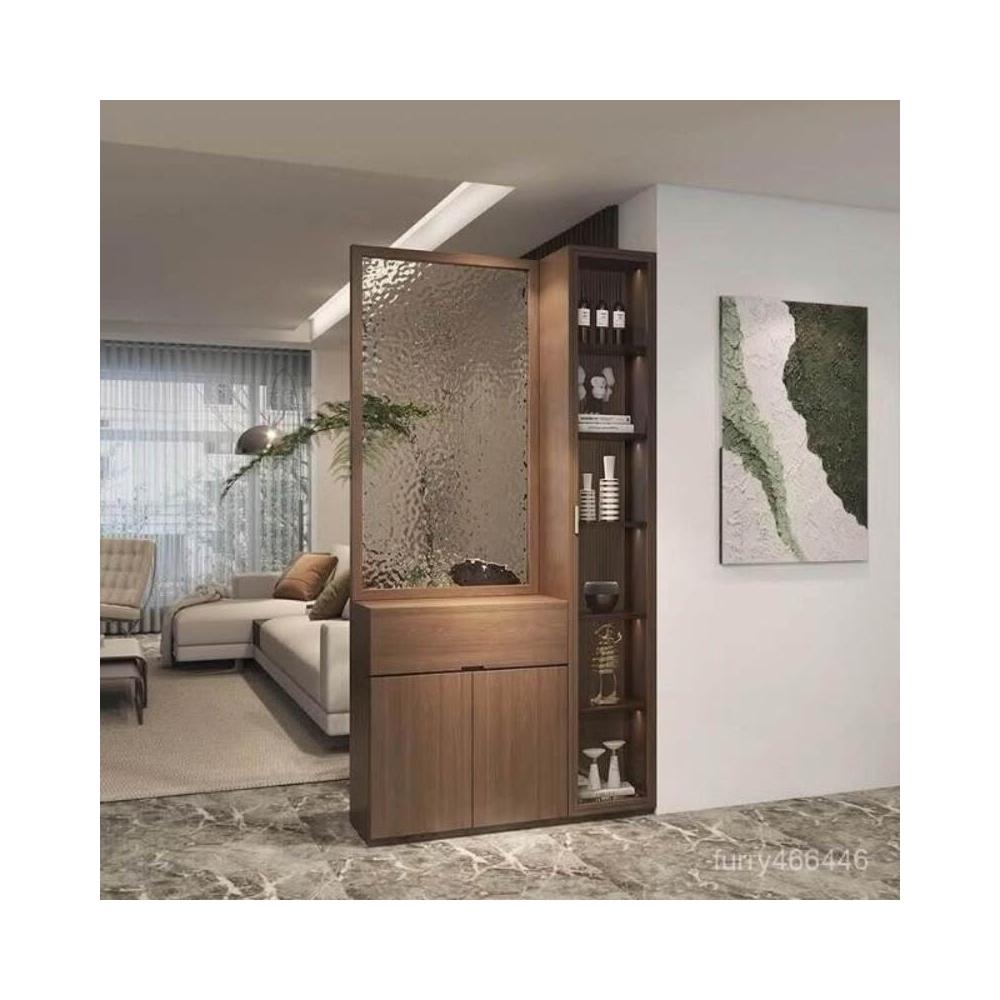 長虹玻璃 隔斷櫃 屏風 客廳入戶進門 玄關櫃 簡約現代 透光 置物架 實木鞋櫃